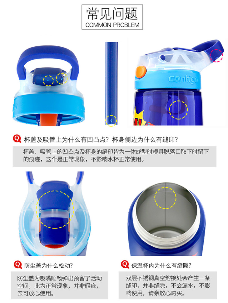 美国Contigo 康迪克儿童保温杯 吸管 光面系列 400ml