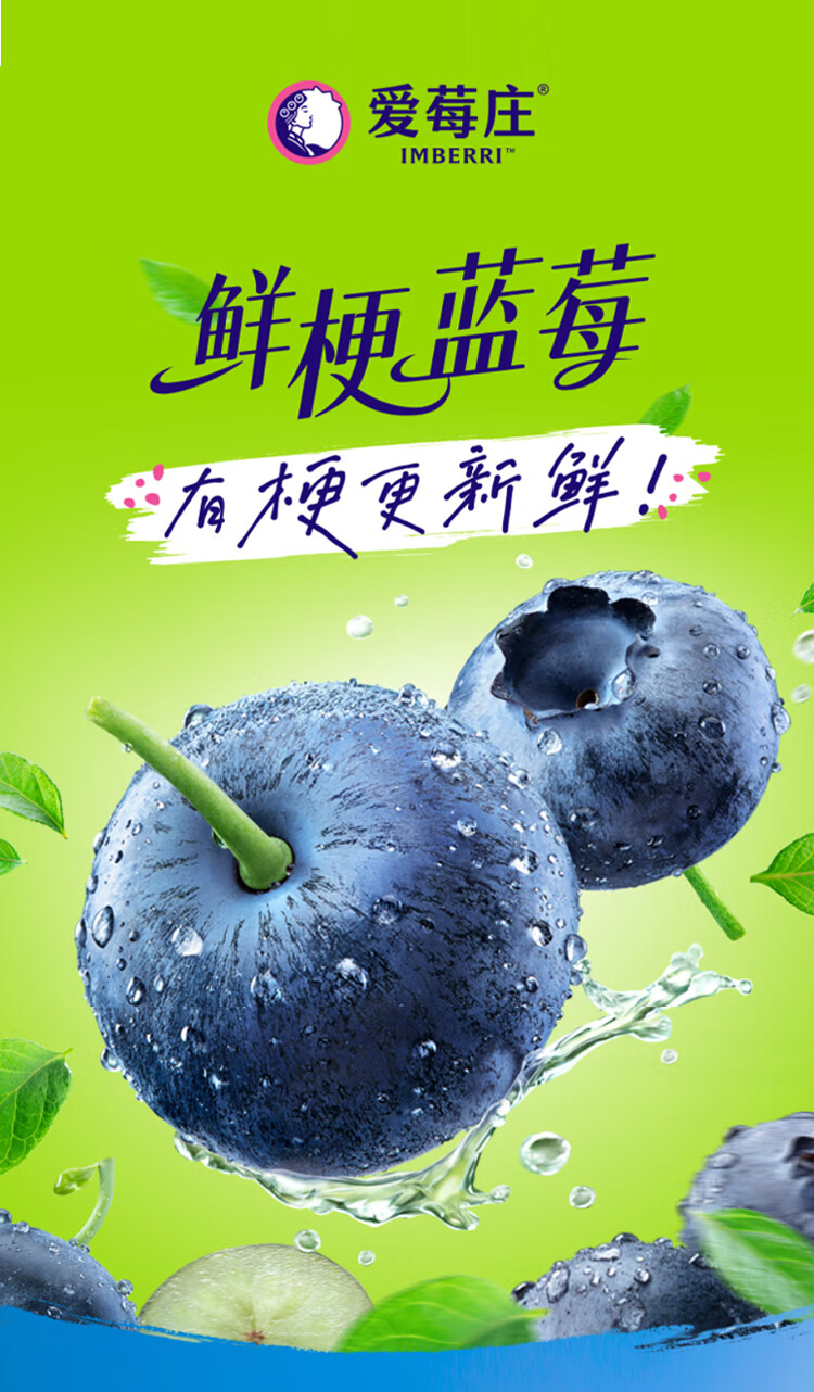 爱莓庄鲜梗蓝莓18mm+ 150g/盒