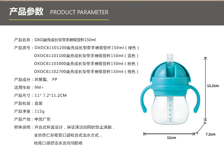 OXOtot奥秀成长型带手柄吸管杯150ML(桔色)OXOC61102700
