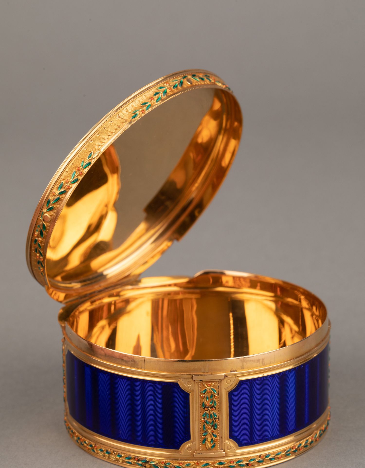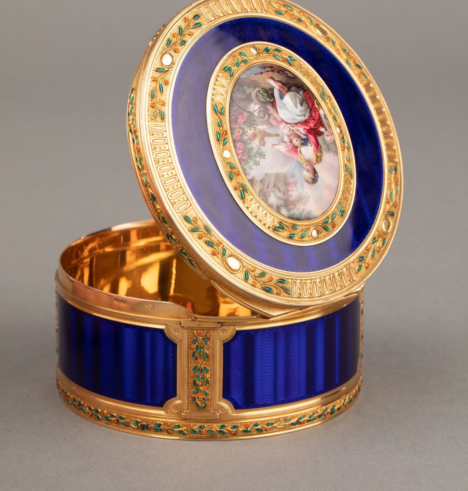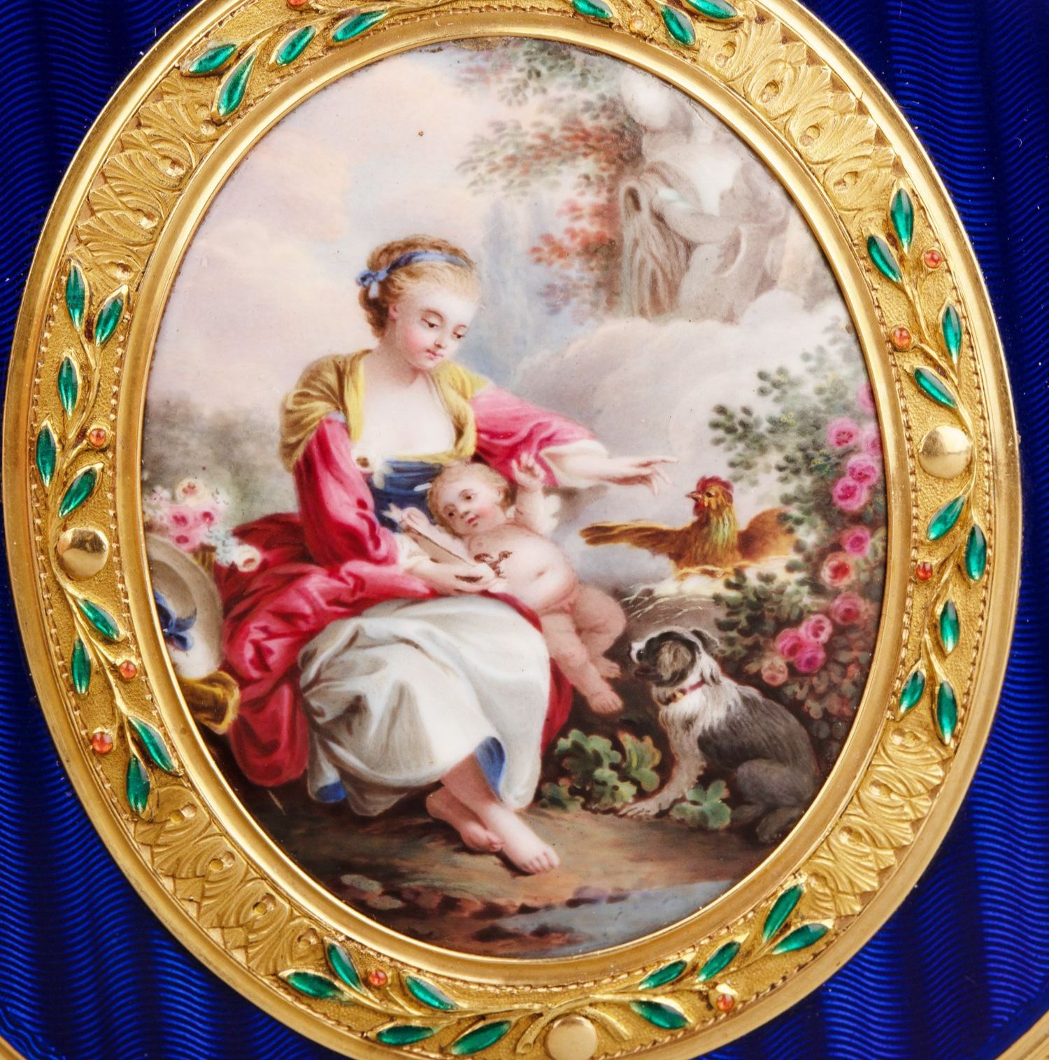 独角鹿西洋古董黄金镶嵌手绘细密画深蓝色玑镂珐琅珍宝盒首饰盒