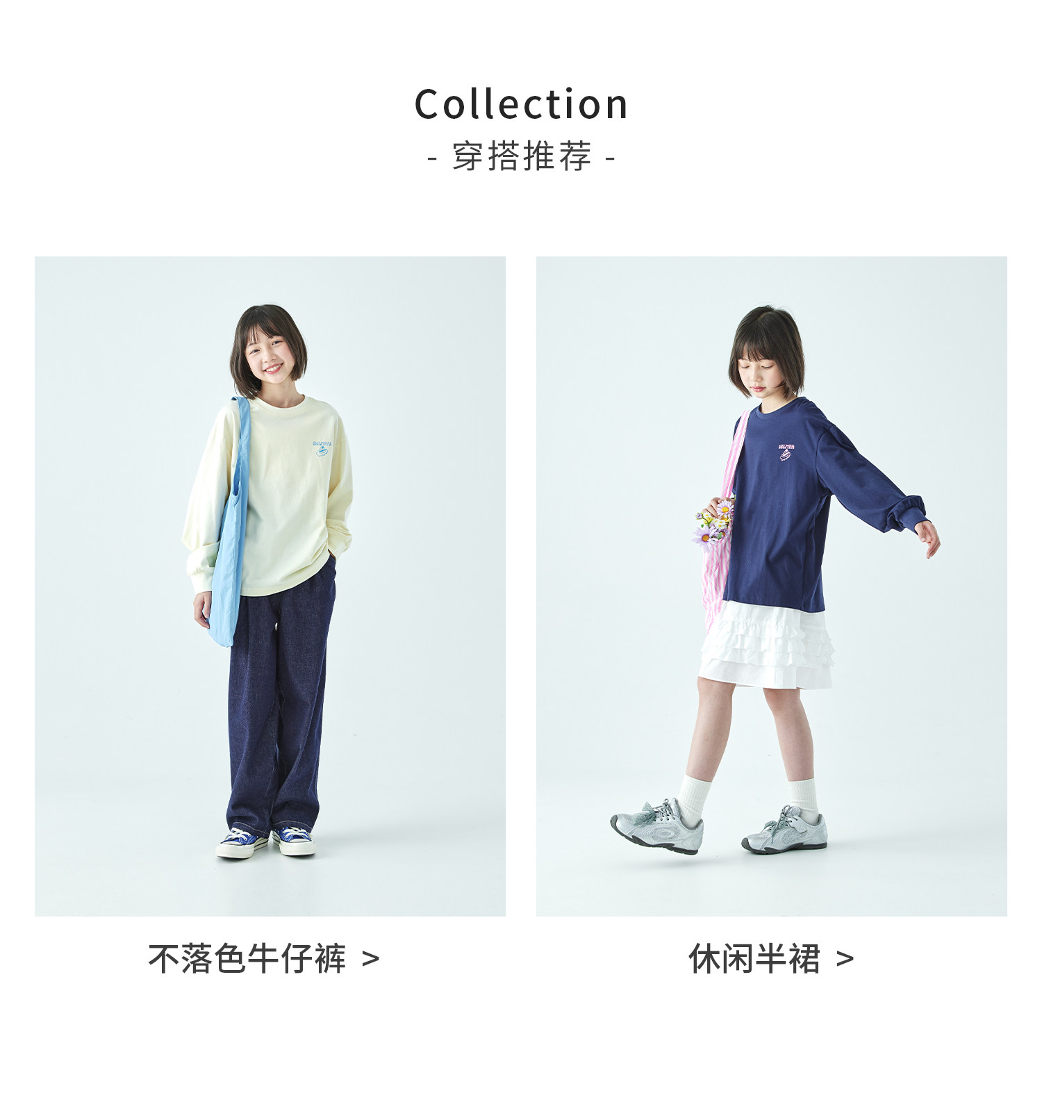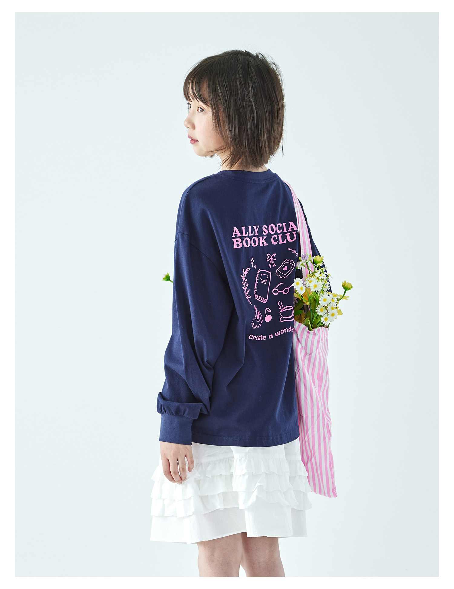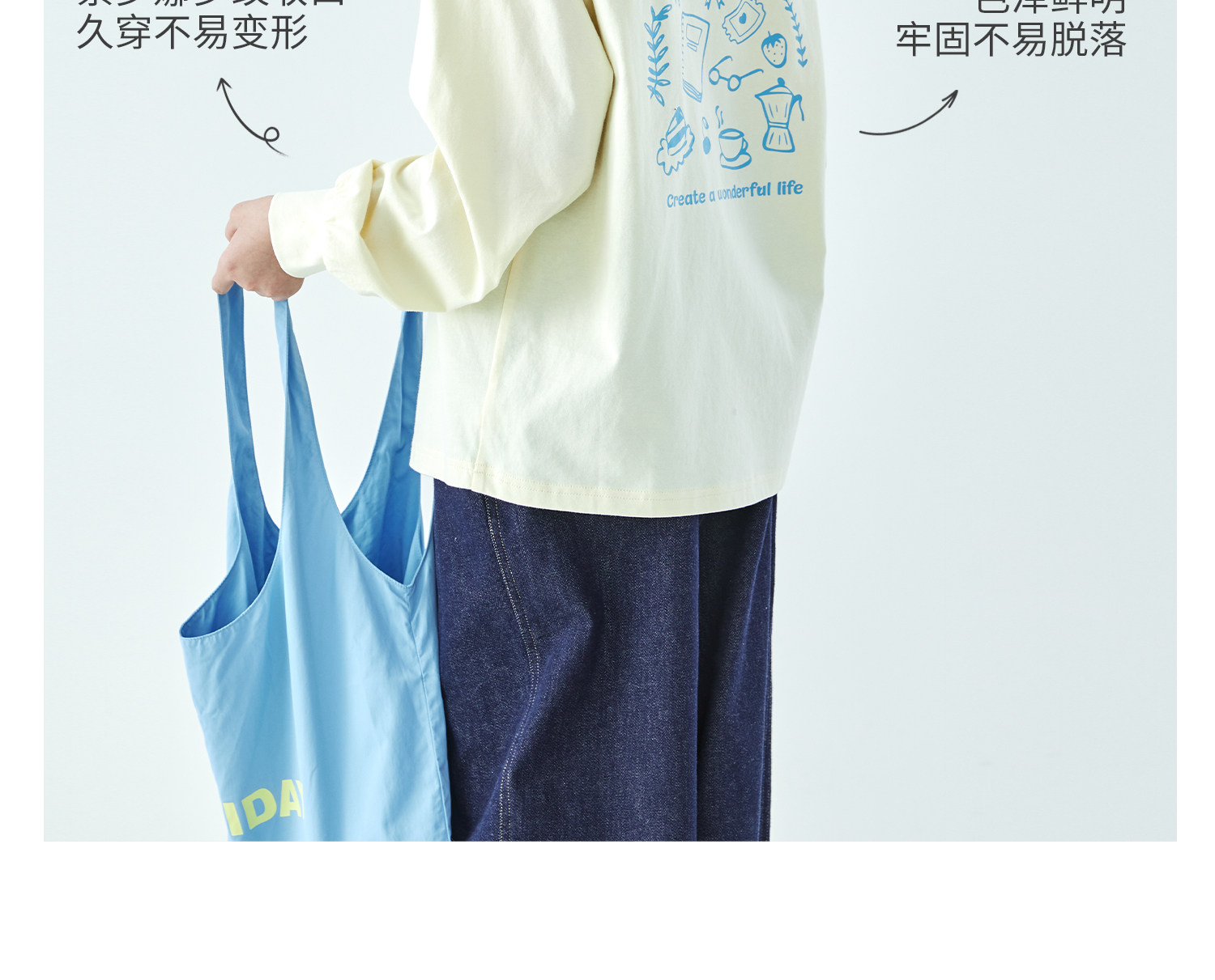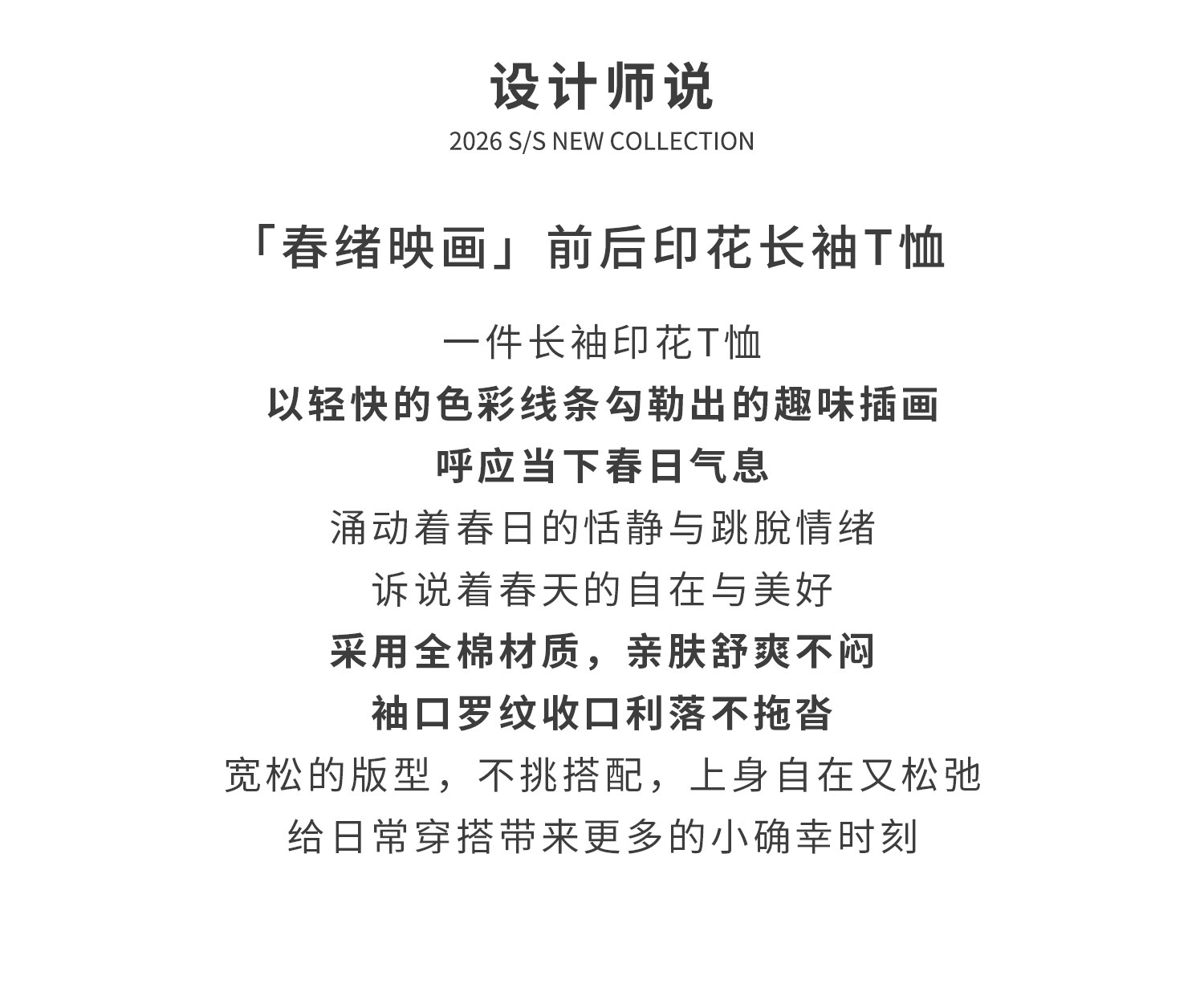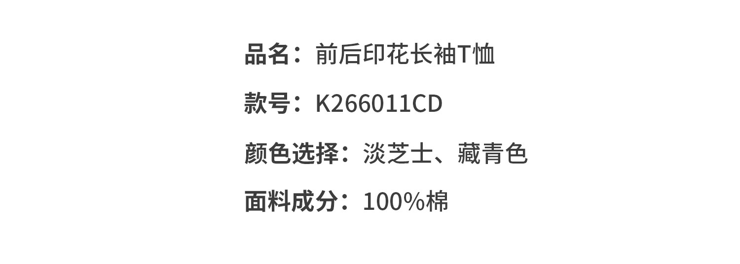 棵初26年春季新款亲子中大女童前后趣味印花长袖T恤纯棉宽松上衣