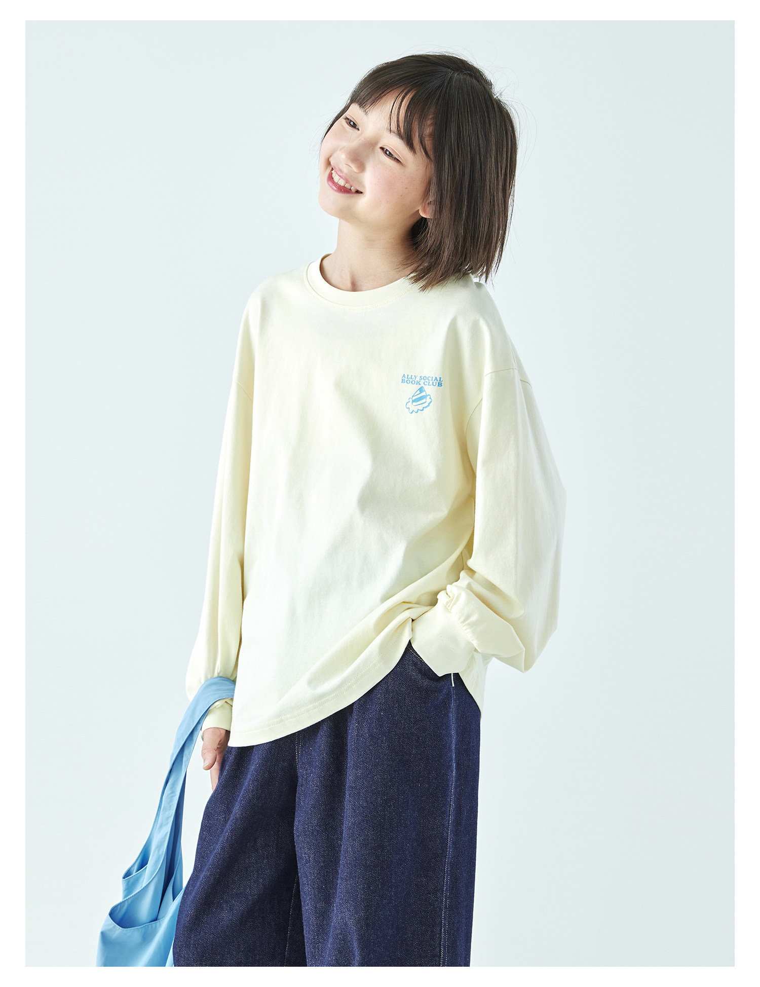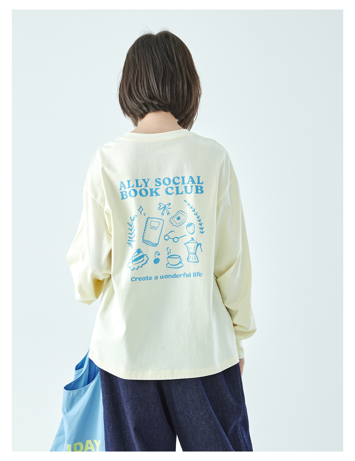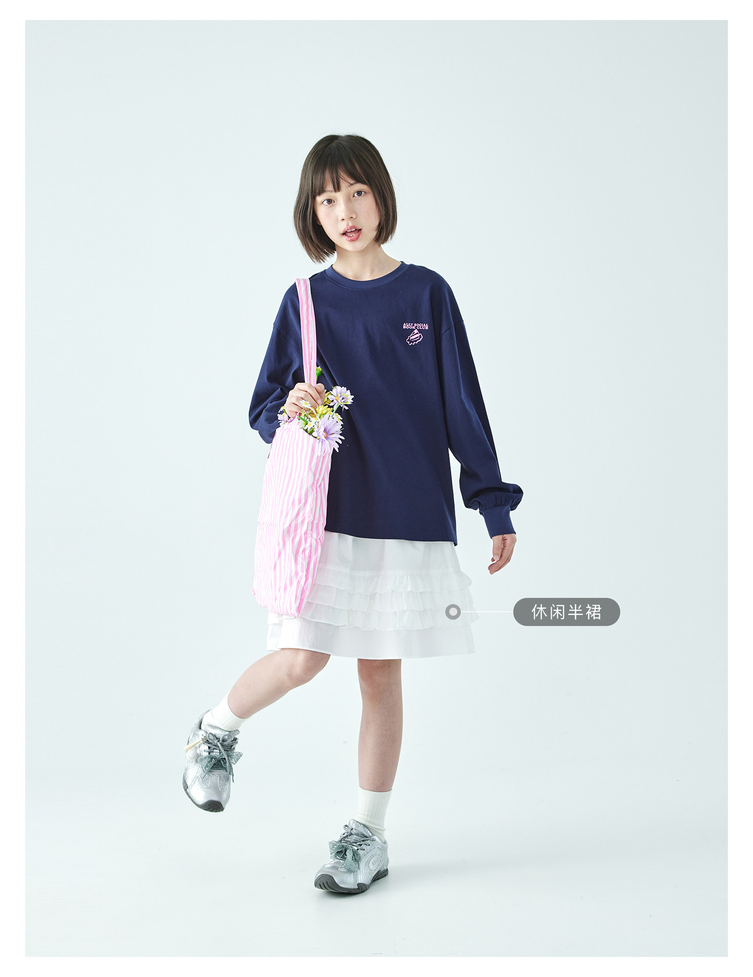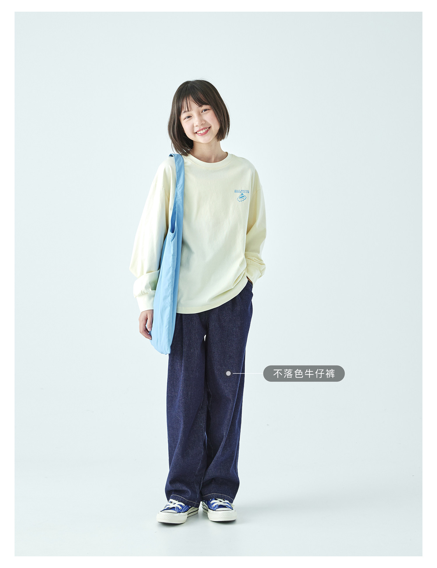 棵初26年春季新款亲子中大女童前后趣味印花长袖T恤纯棉宽松上衣