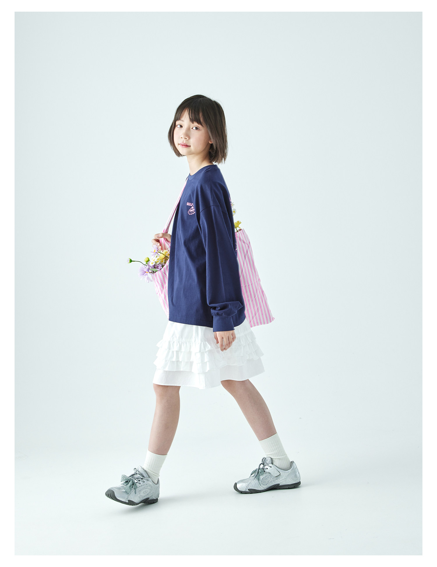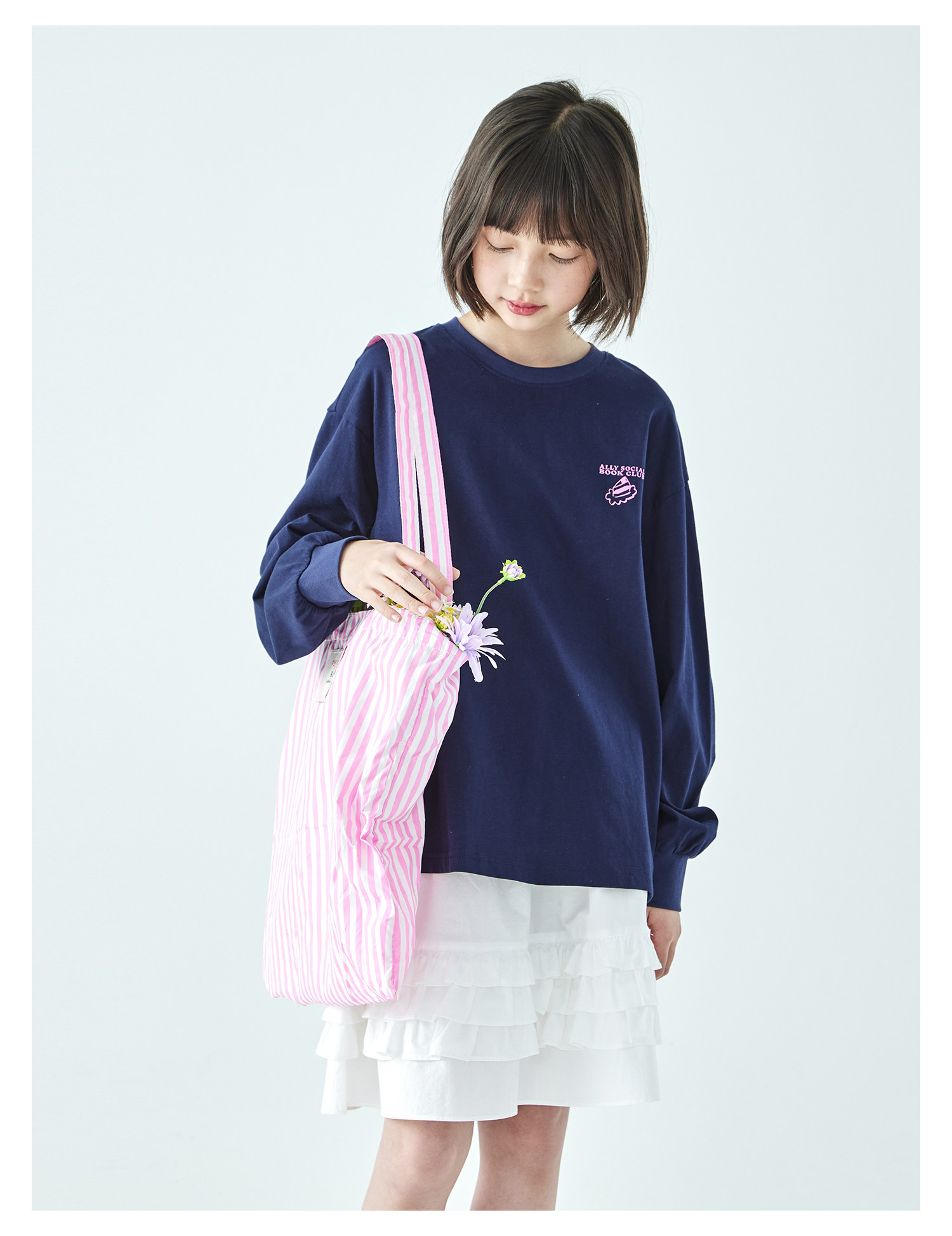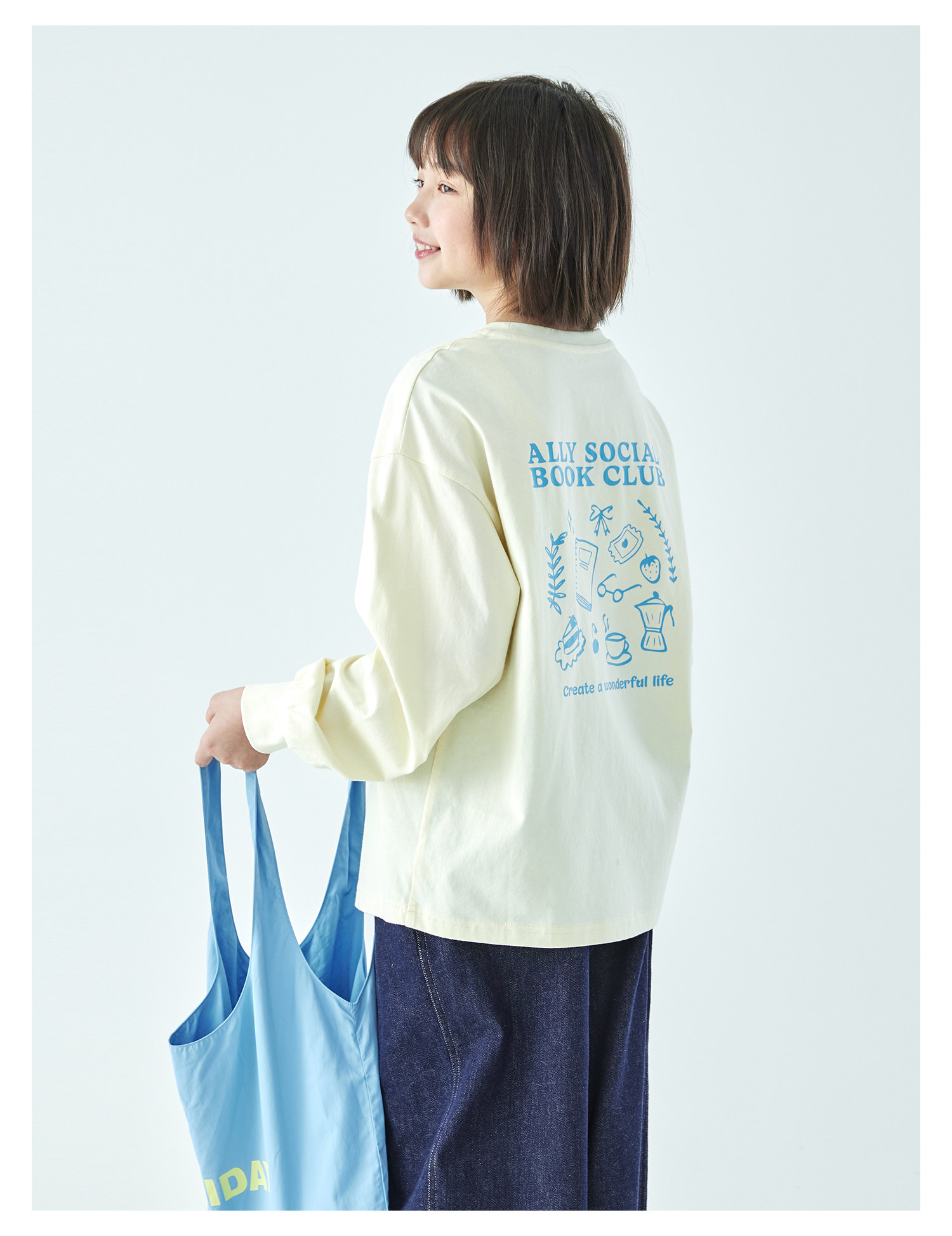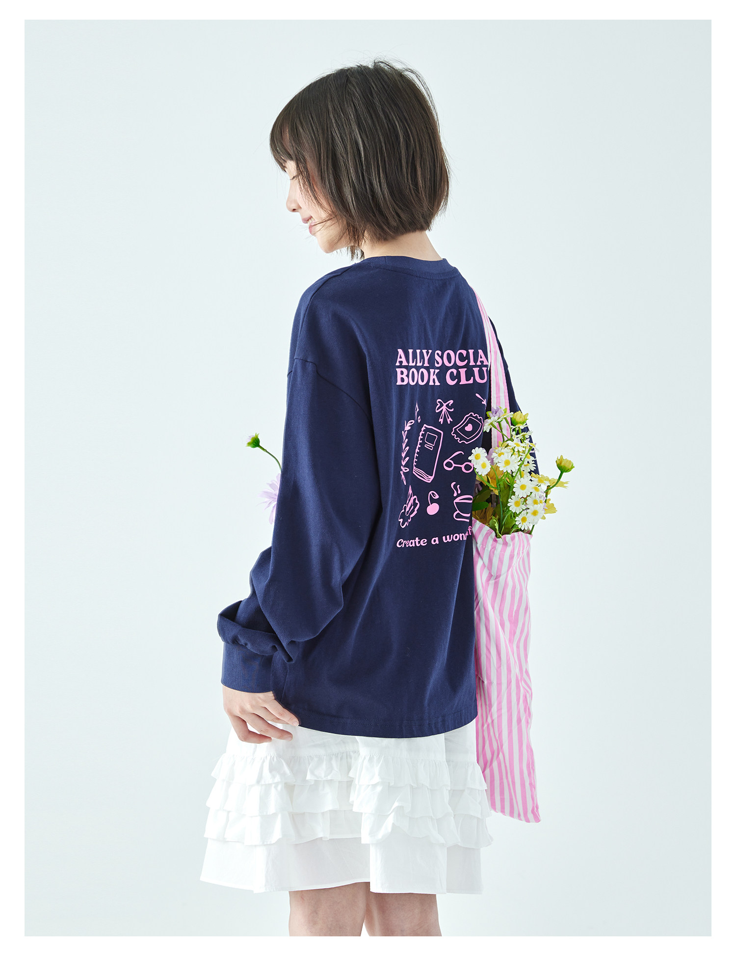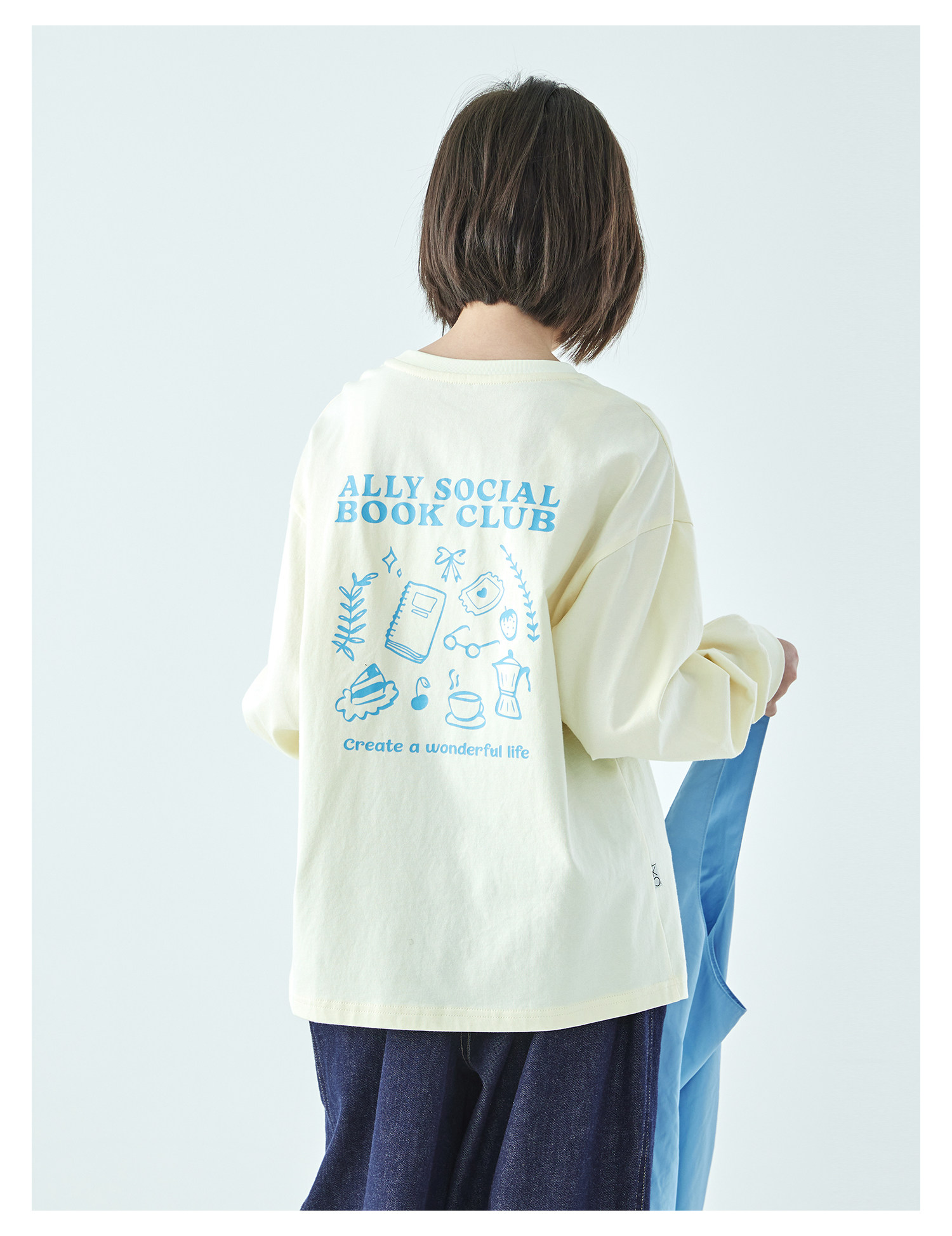 棵初26年春季新款亲子中大女童前后趣味印花长袖T恤纯棉宽松上衣