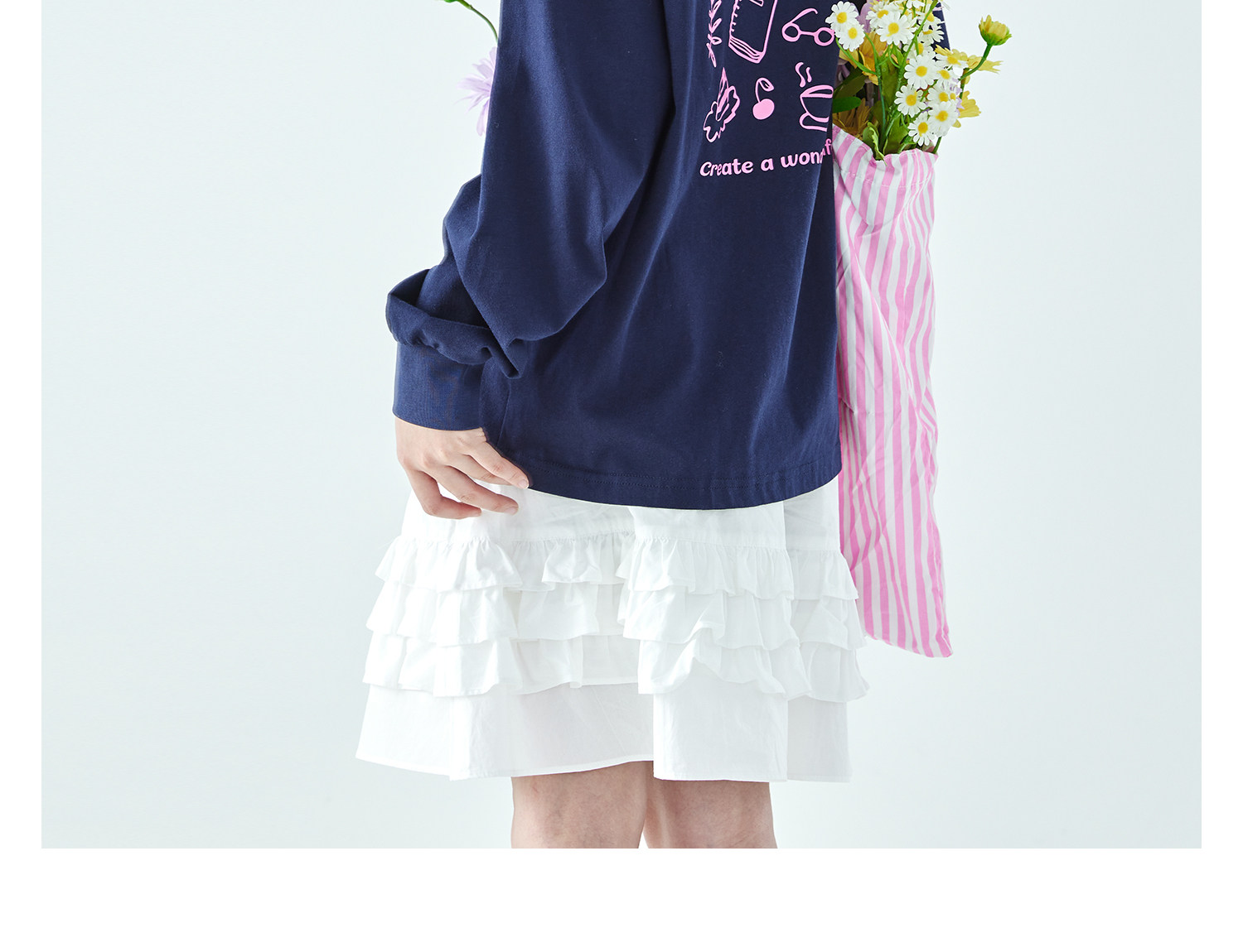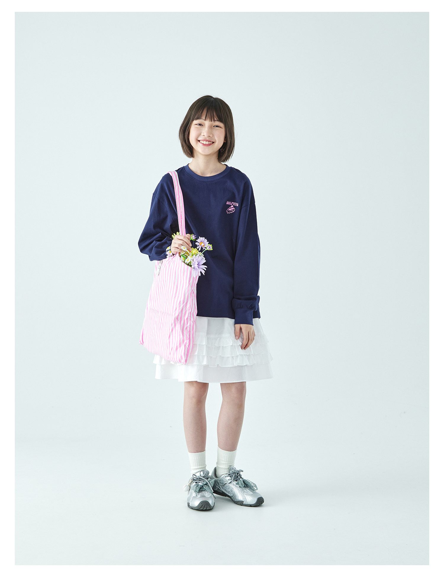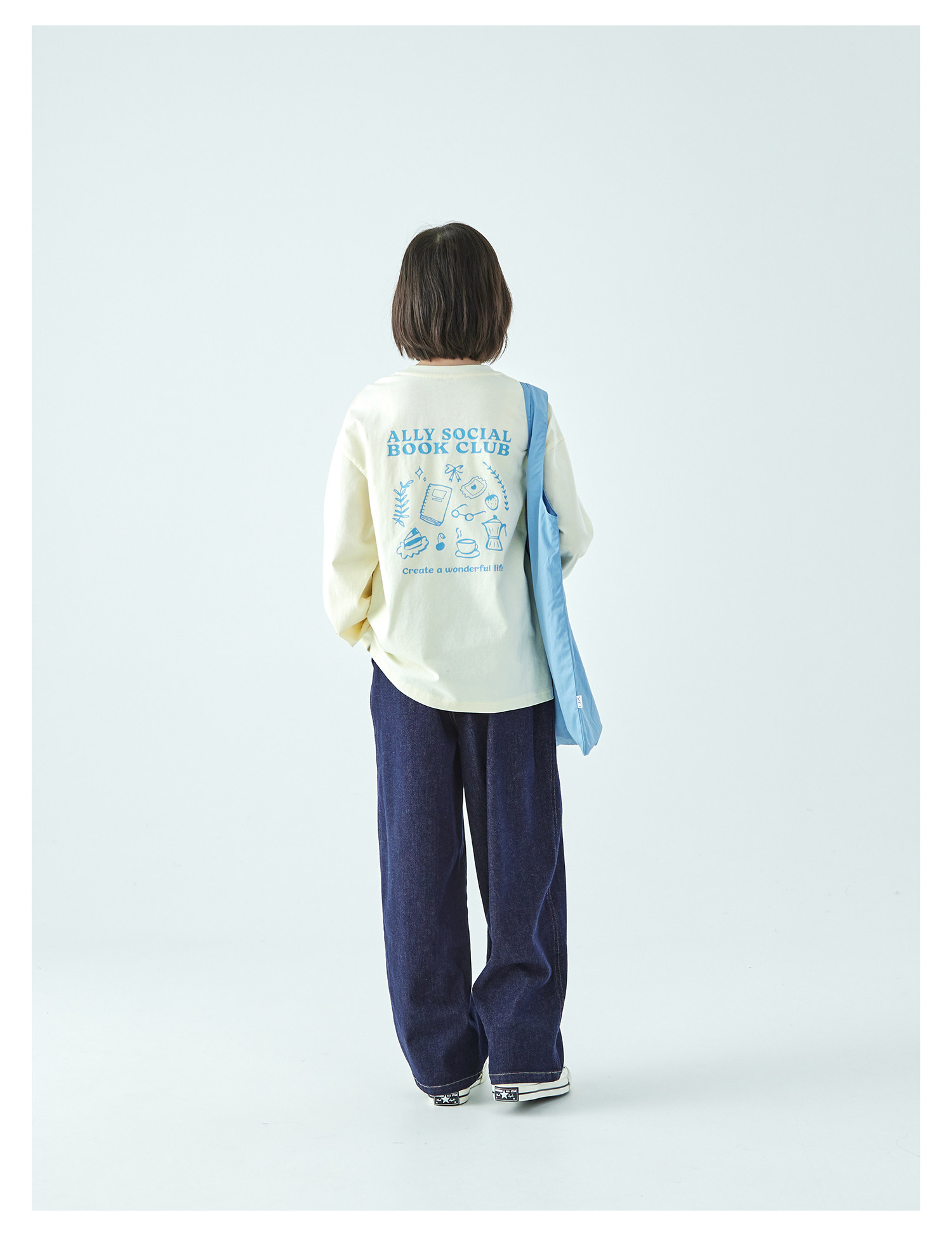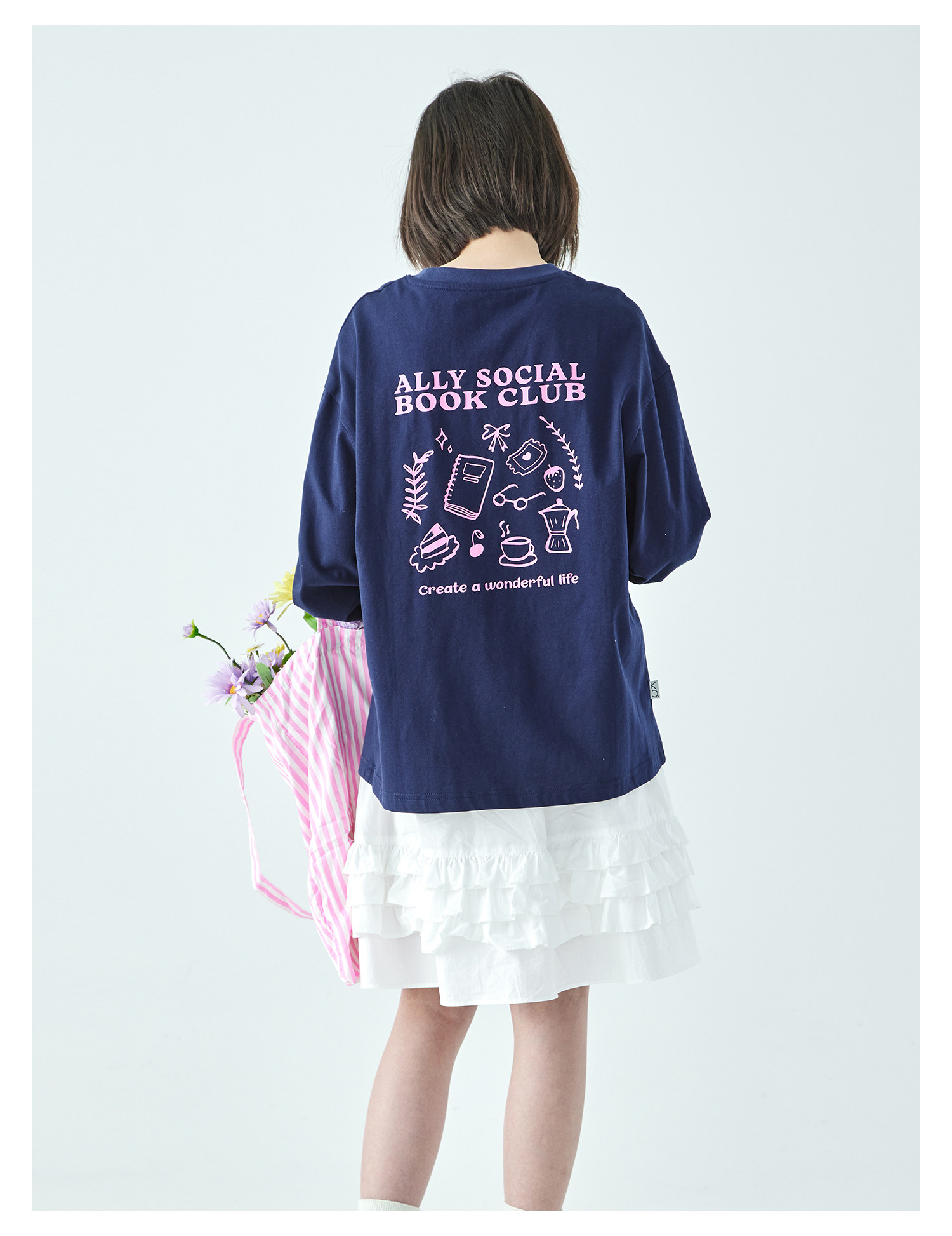 棵初26年春季新款亲子中大女童前后趣味印花长袖T恤纯棉宽松上衣