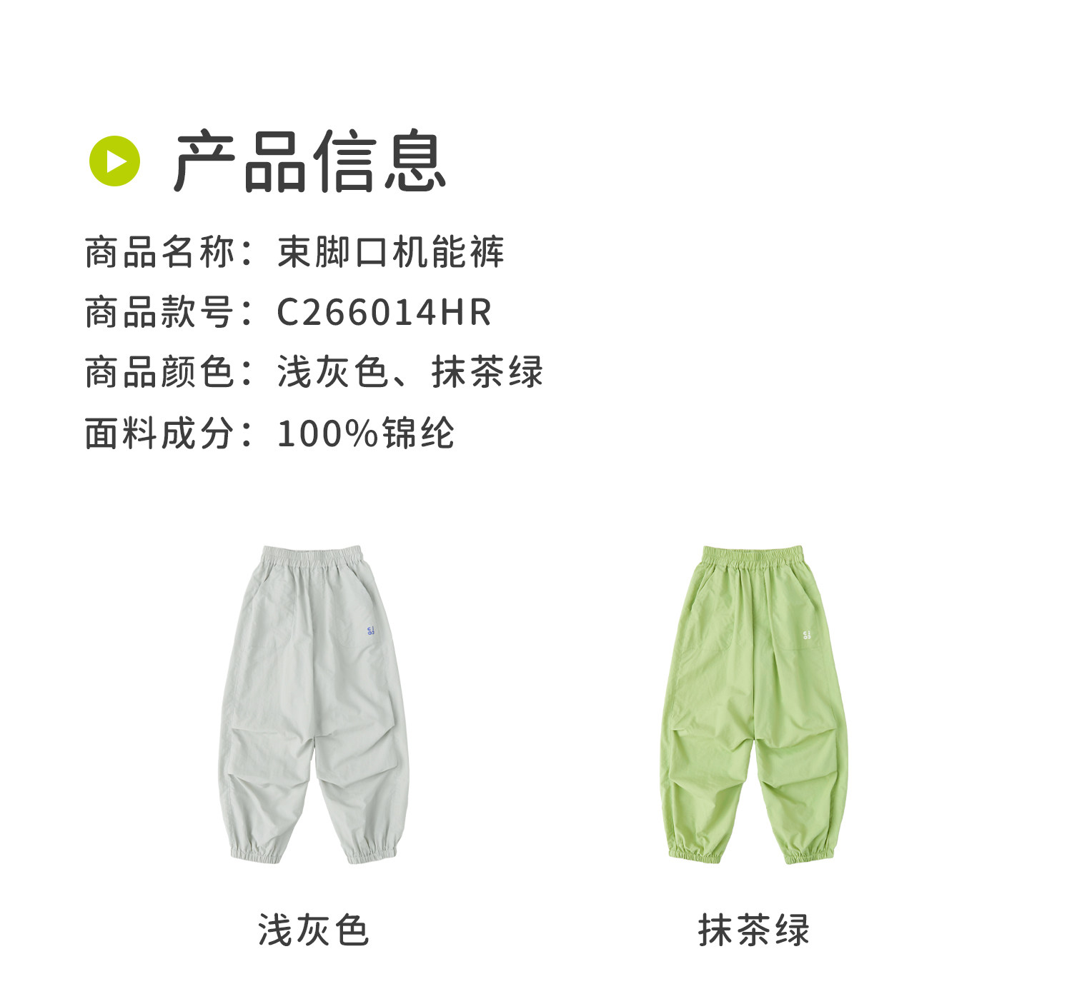浅灰色预售4.23发 cicochild2026年春季新款亲子中大女童束脚机能裤防泼水运动裤子