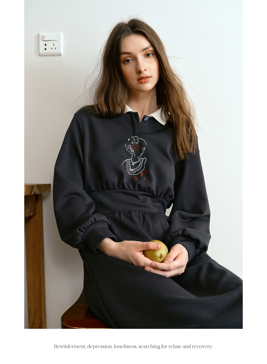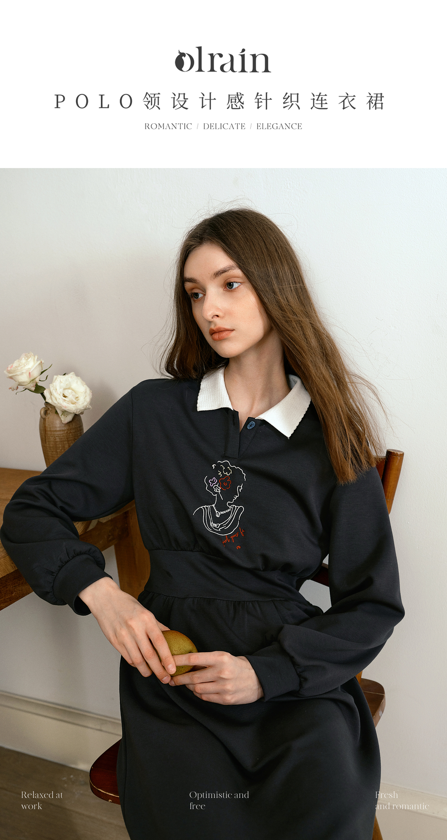 OLrain欧芮儿法式POLO领设计感针织连衣裙2025秋季新款时尚连衣裙