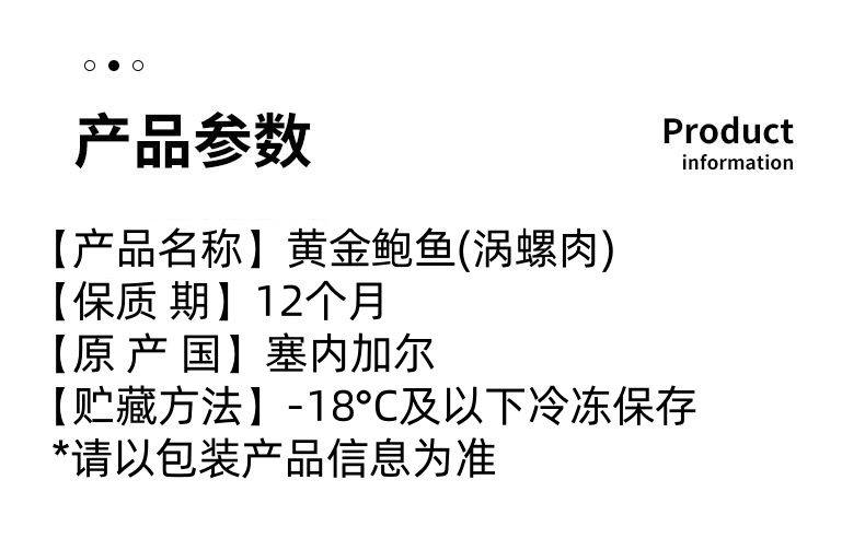 【野生海产】黄金鲍鱼(涡螺肉)175g ±25g原料原产地-塞内加尔