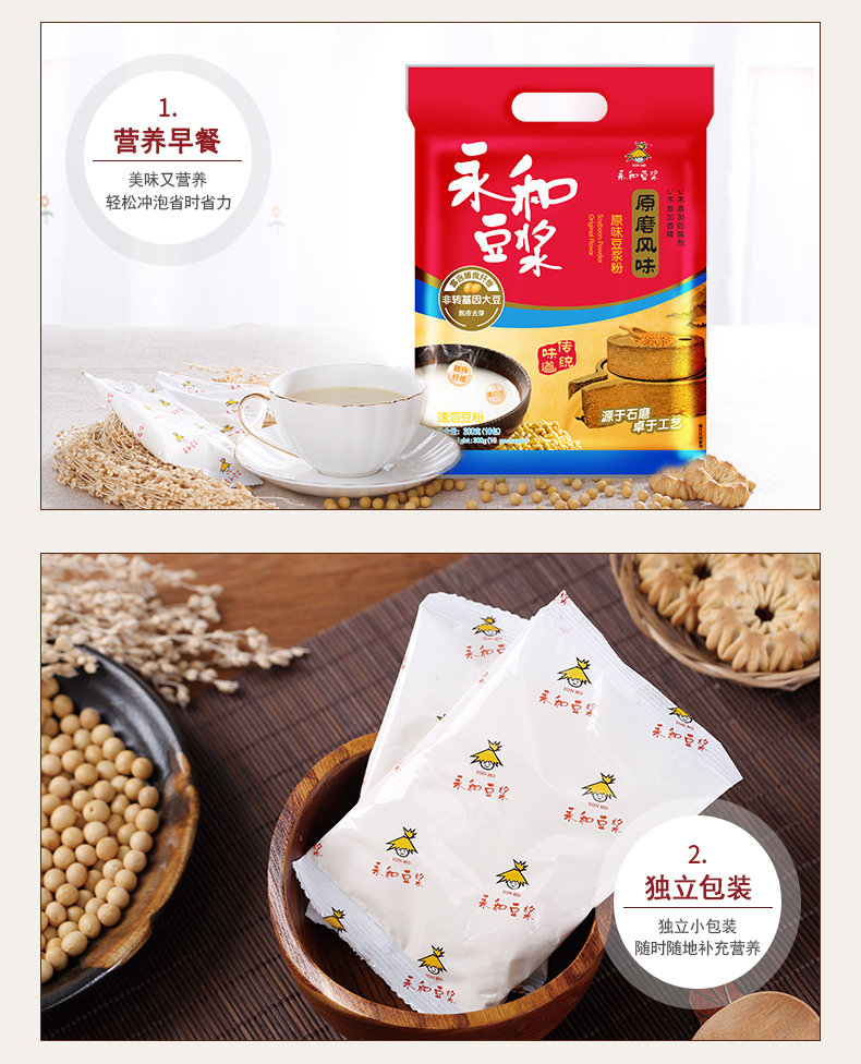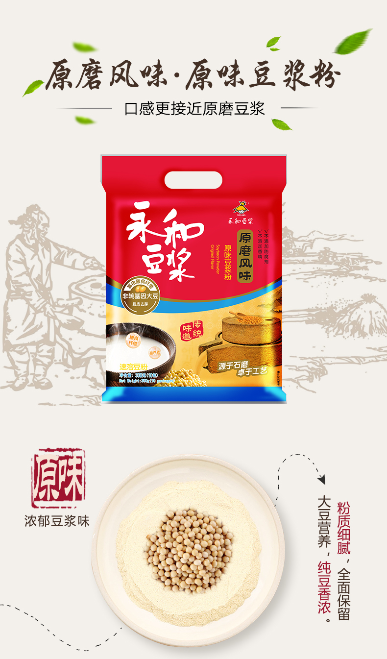 永和豆浆 原磨风味 原味豆浆粉 300g 非转基因大豆(30g*10小包)
