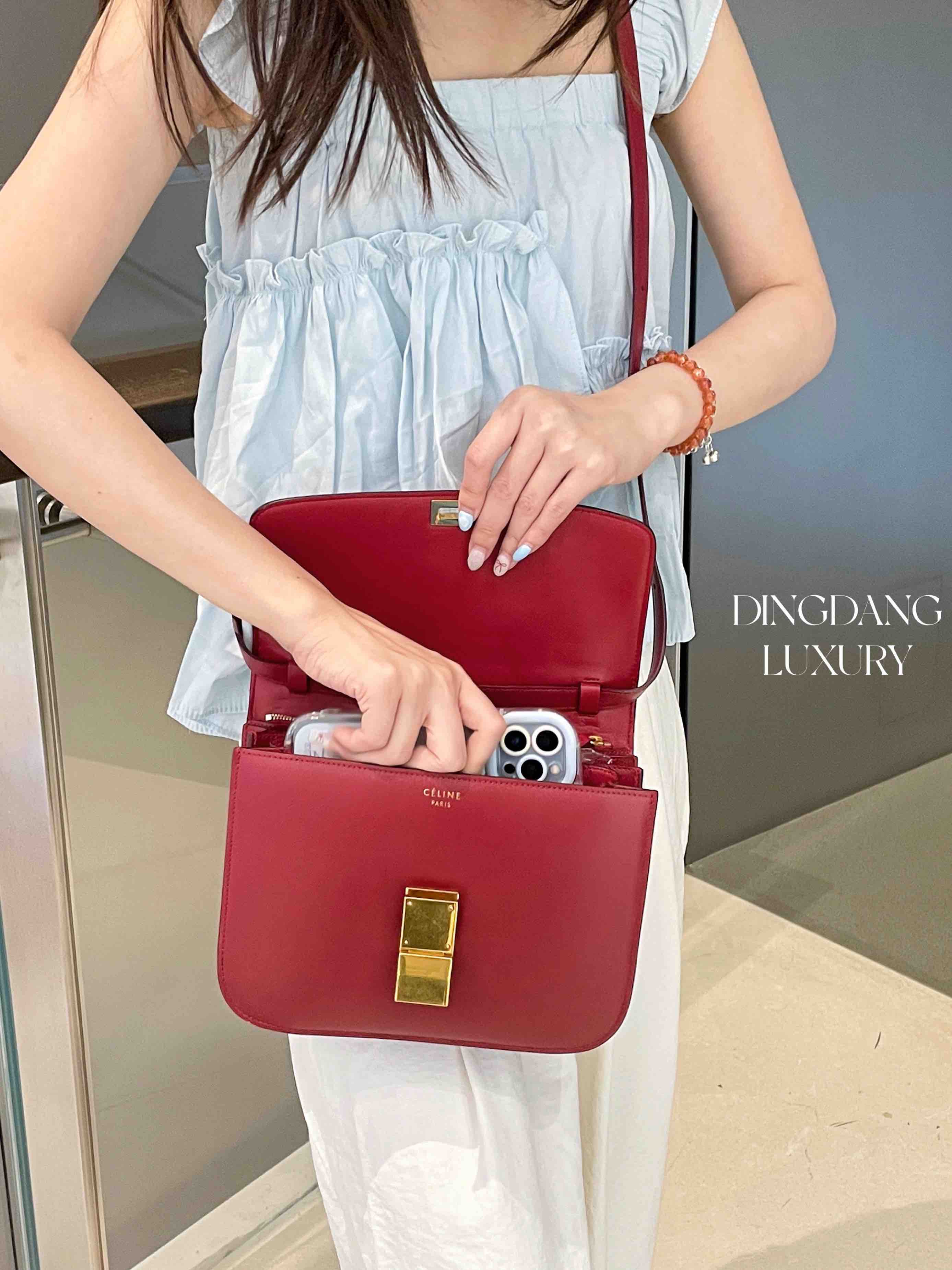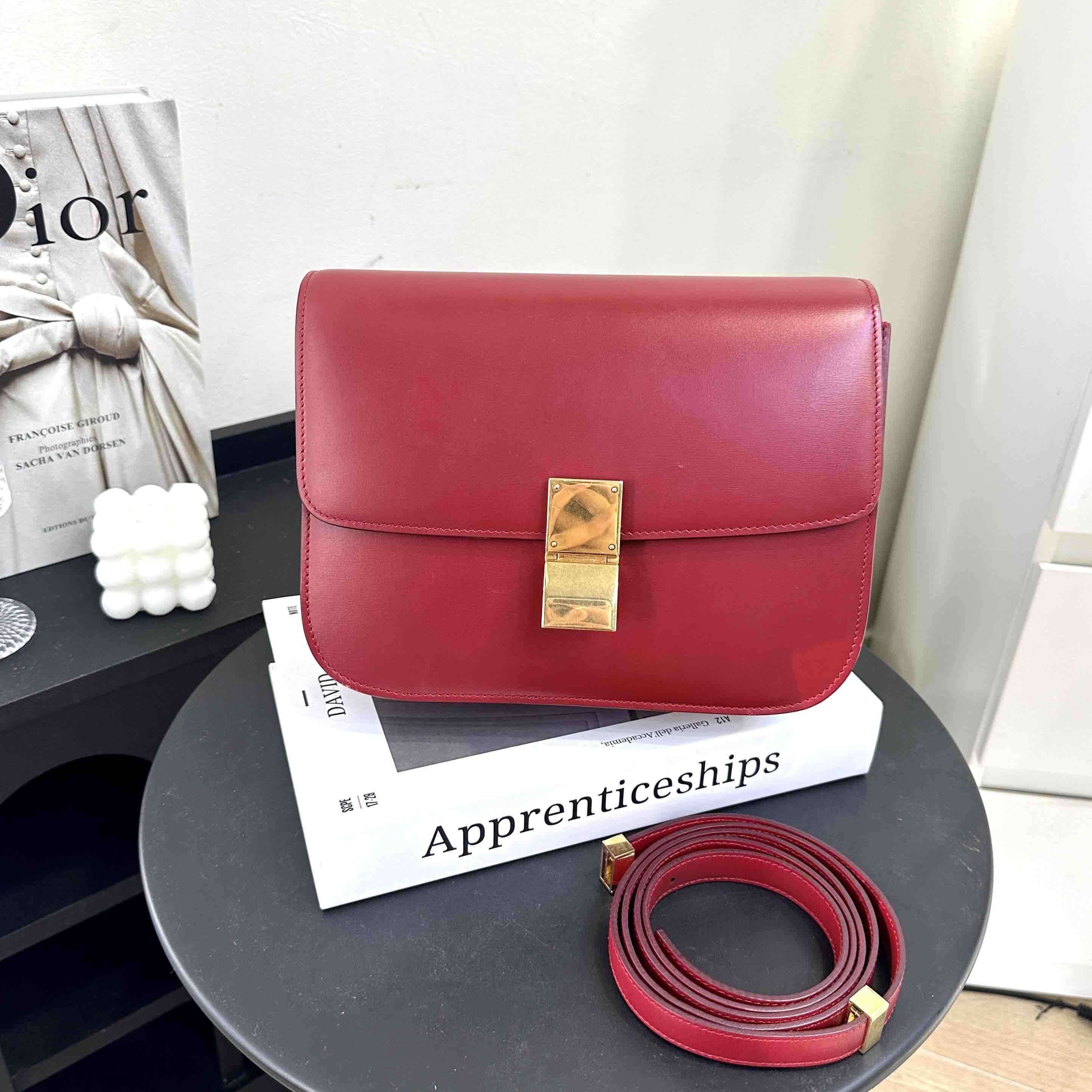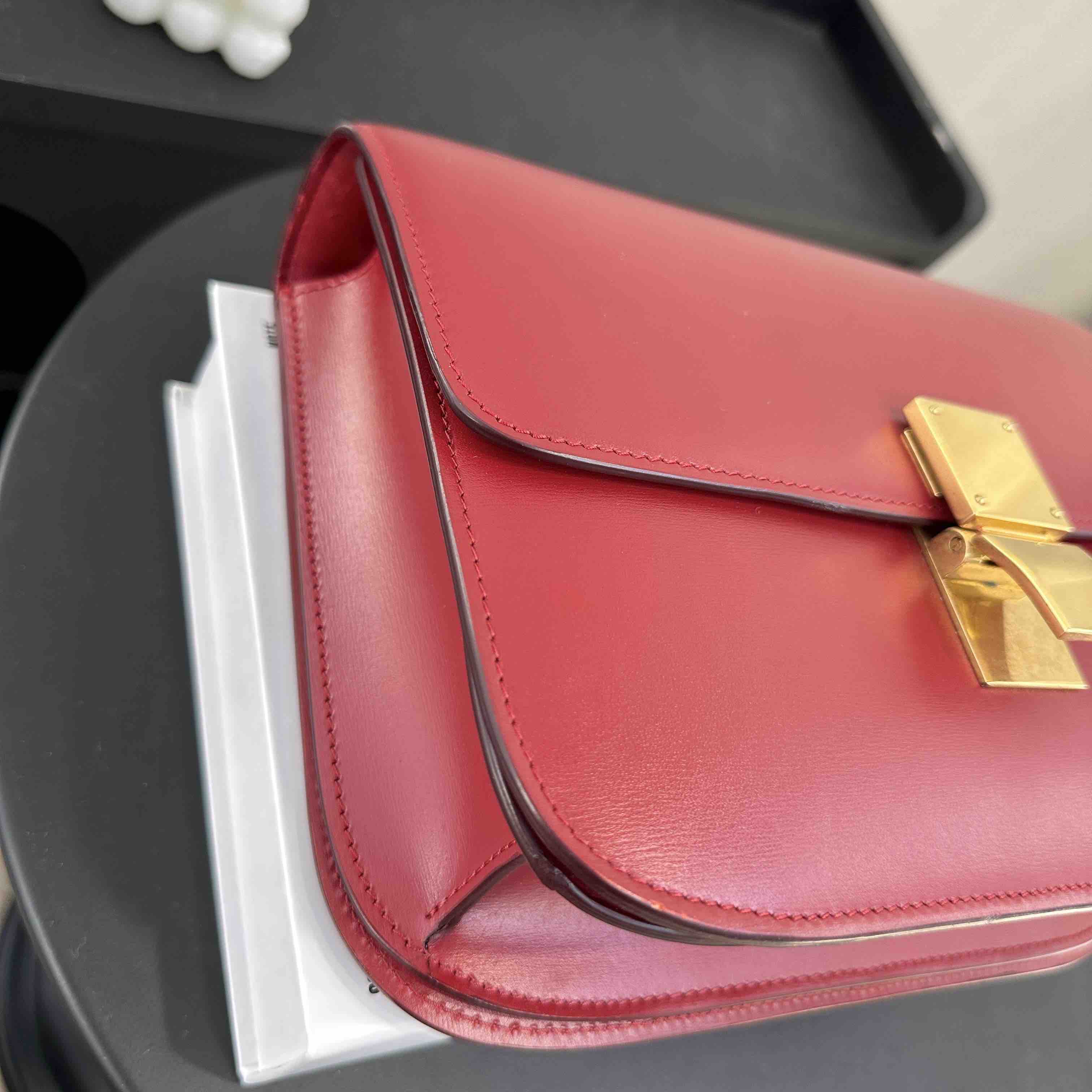 【商品详情】正品二手 Celine box 中号 红金 牛皮 翻盖包👏🏻95新 24×18 配件:肩带 防尘袋x2。包口两侧正常使用磨损 背面轻微划痕,五金轻微使用划痕
