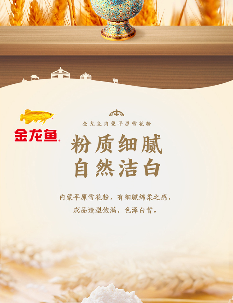 金龙鱼 面粉 中筋粉 内蒙平原雪花粉 1kg 麦芯粉 内蒙古河套平原小麦