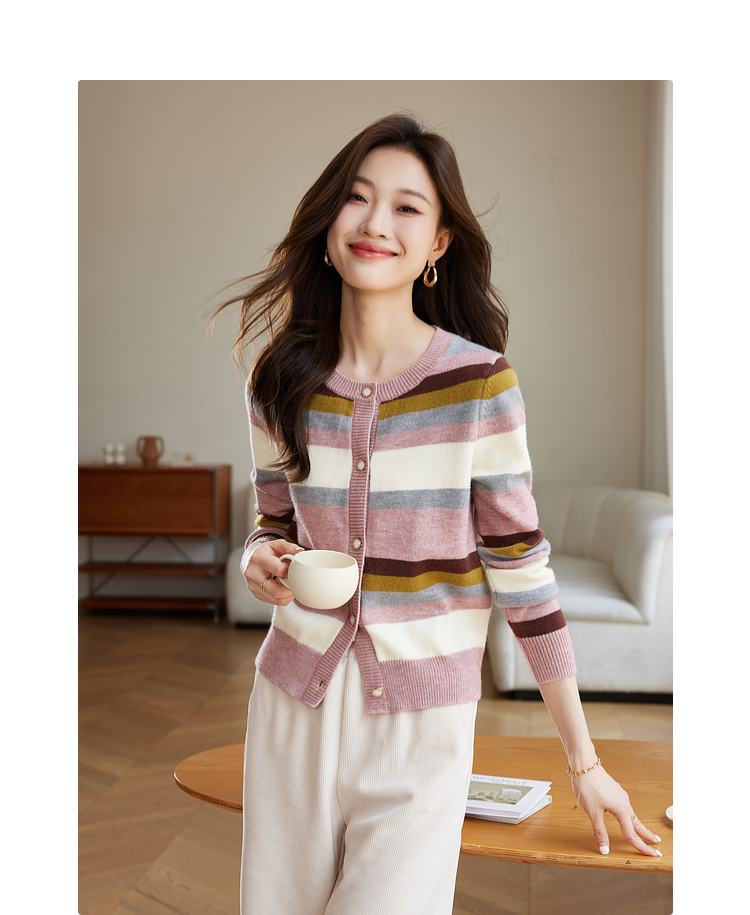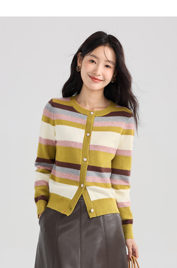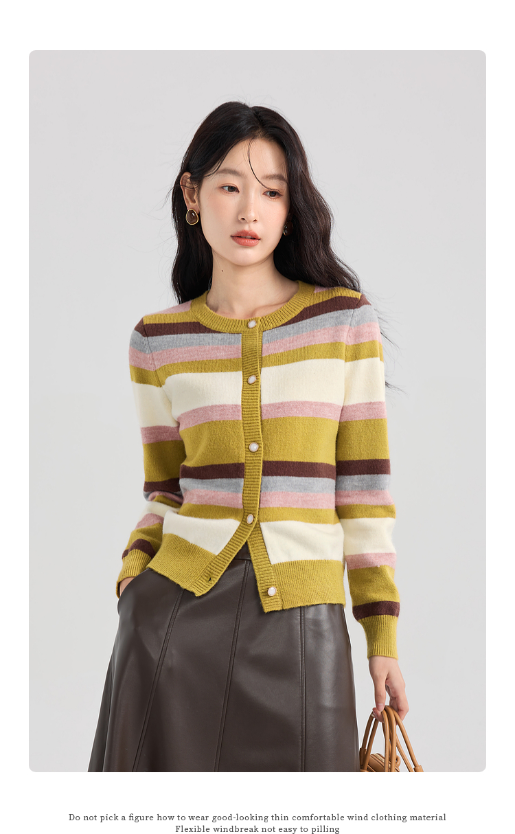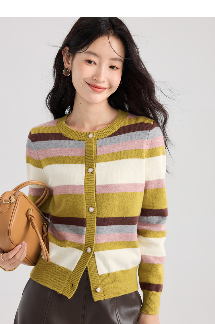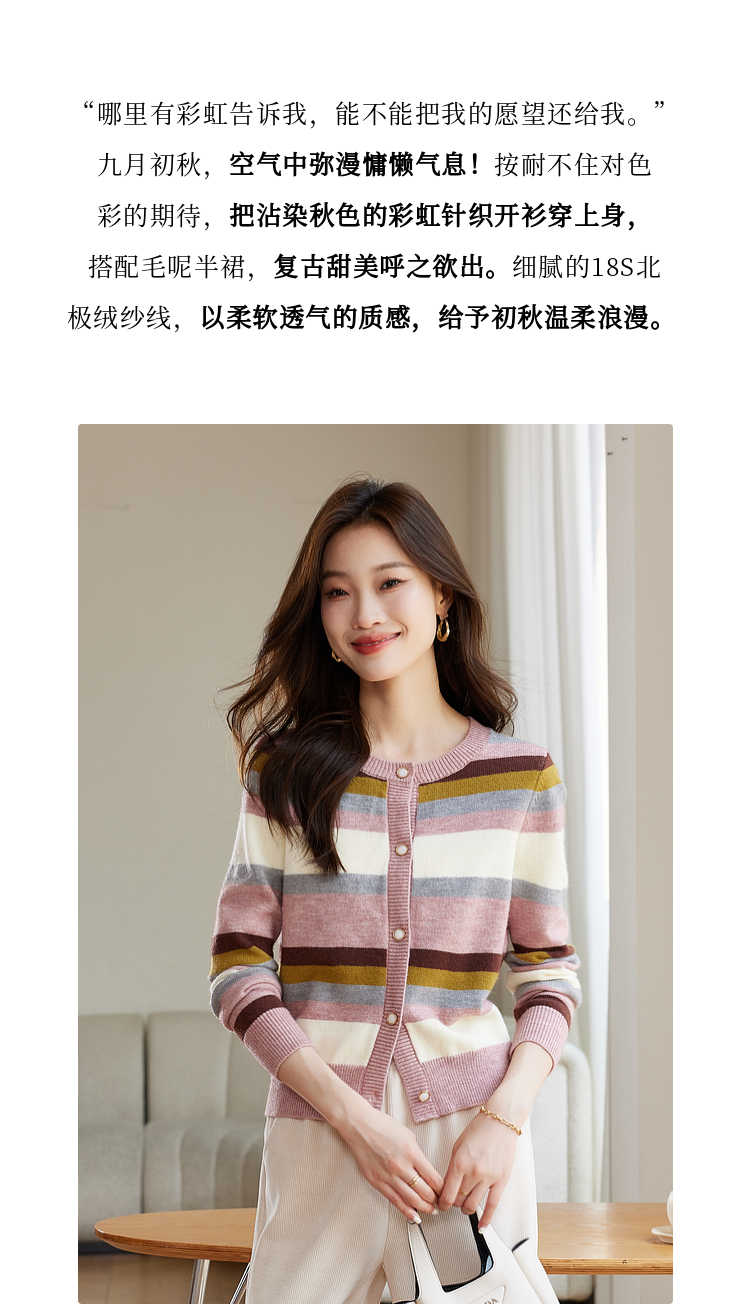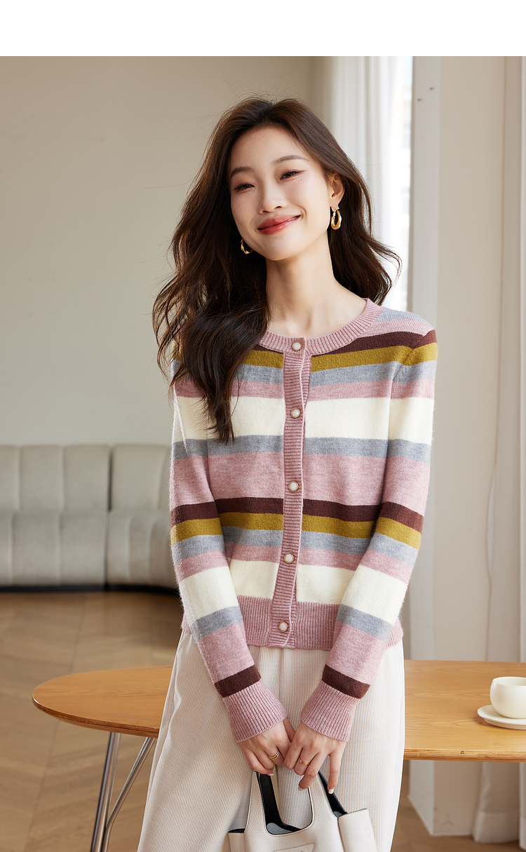 【专属特价】熙世界多巴胺穿搭彩虹条纹针织衫2025秋冬新款甜美气质开衫毛衣