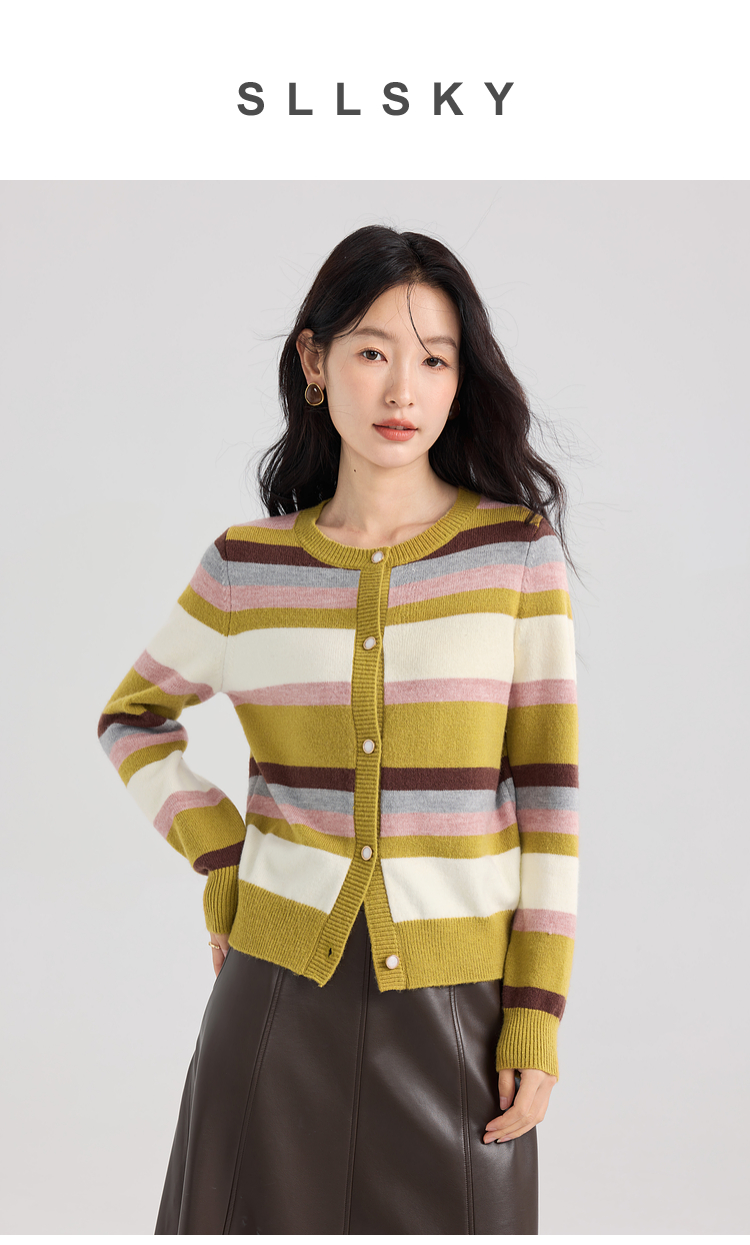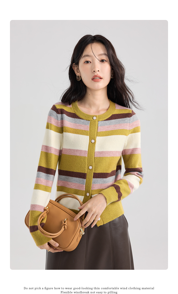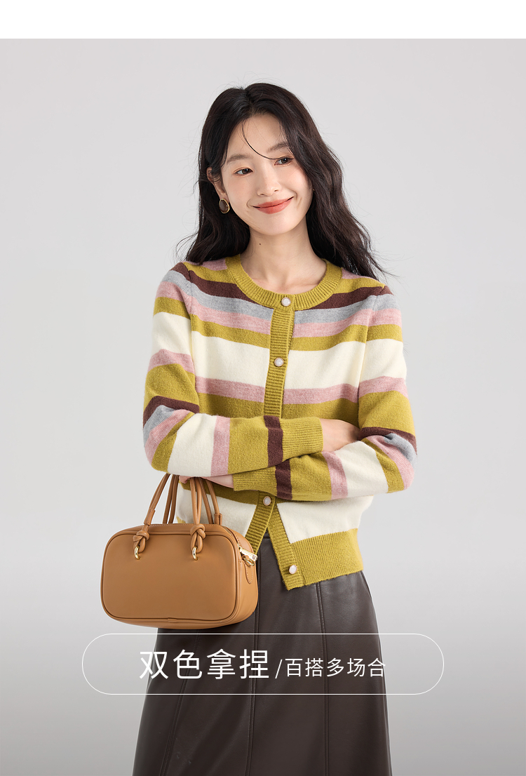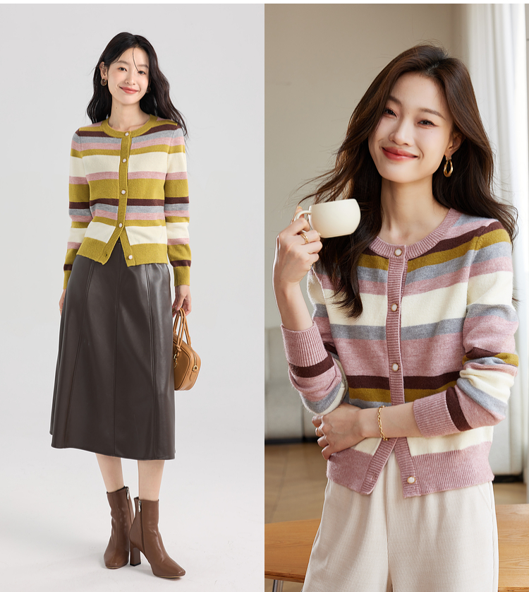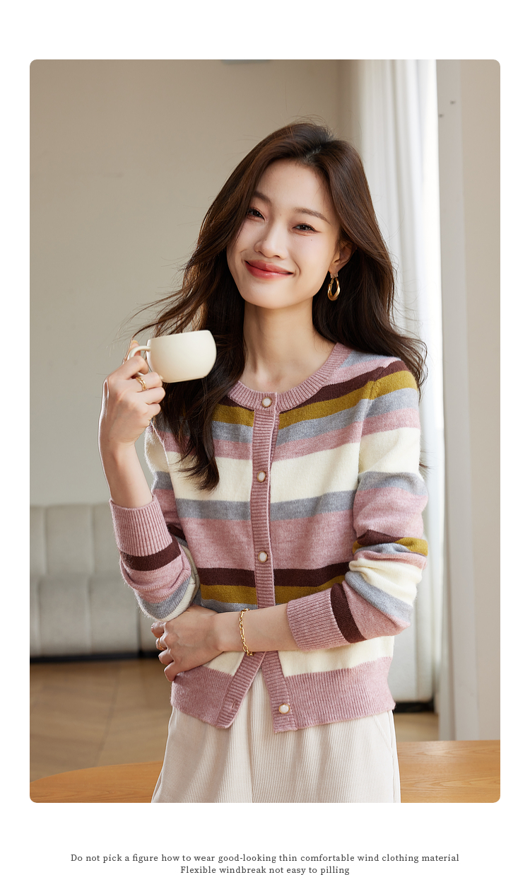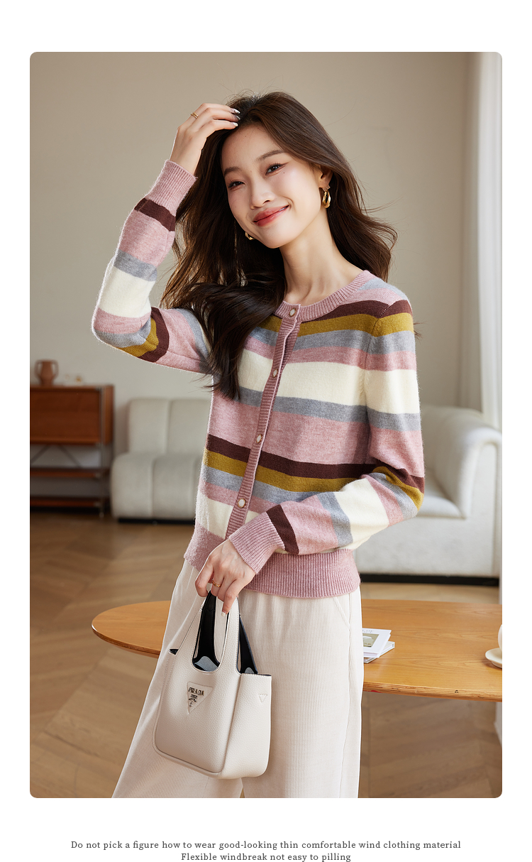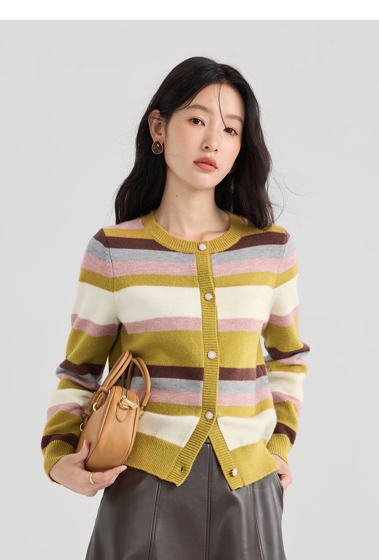 【专属特价】熙世界多巴胺穿搭彩虹条纹针织衫2025秋冬新款甜美气质开衫毛衣