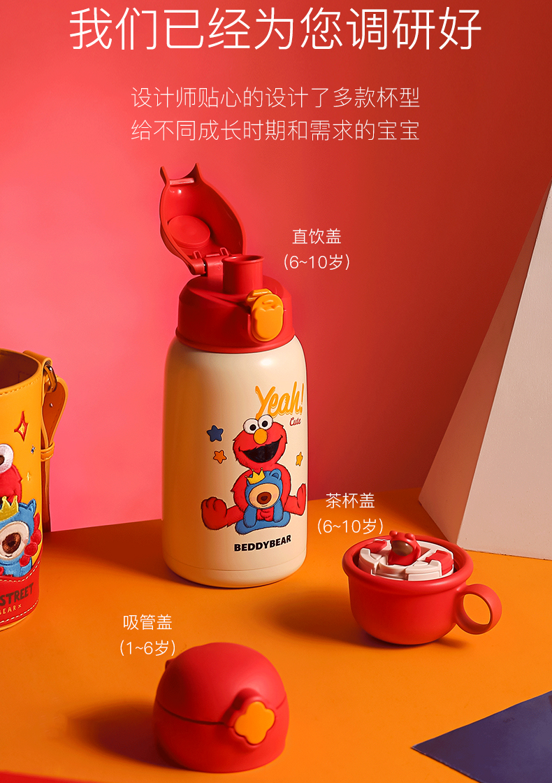 杯具熊芝麻街联名系列四叶草儿童保温壶(一杯三盖)