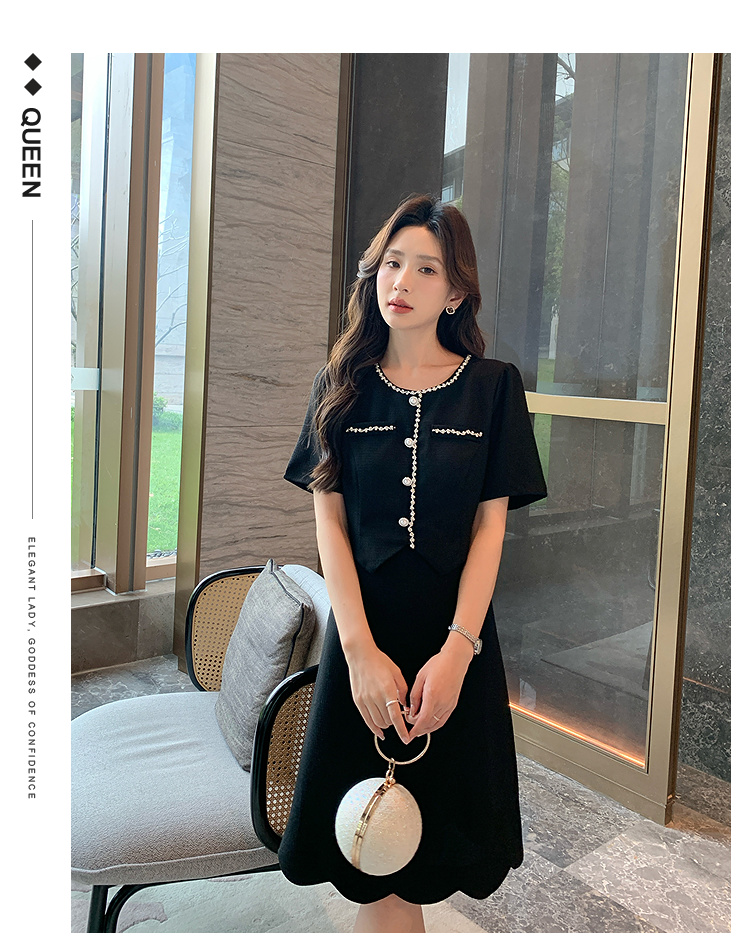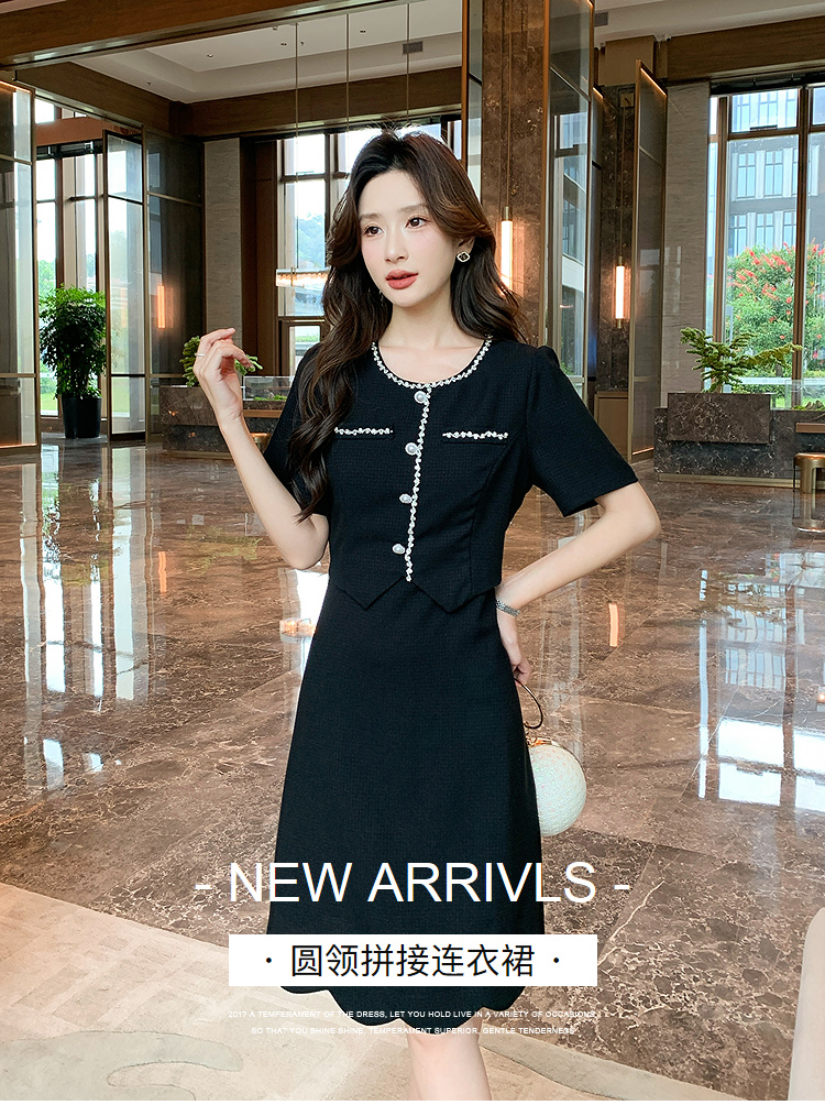【清仓超15天不保价】奢姿大码女装2025夏季新款时尚优雅短袖连衣裙胖妹妹通勤简约裙子9952890414【1】