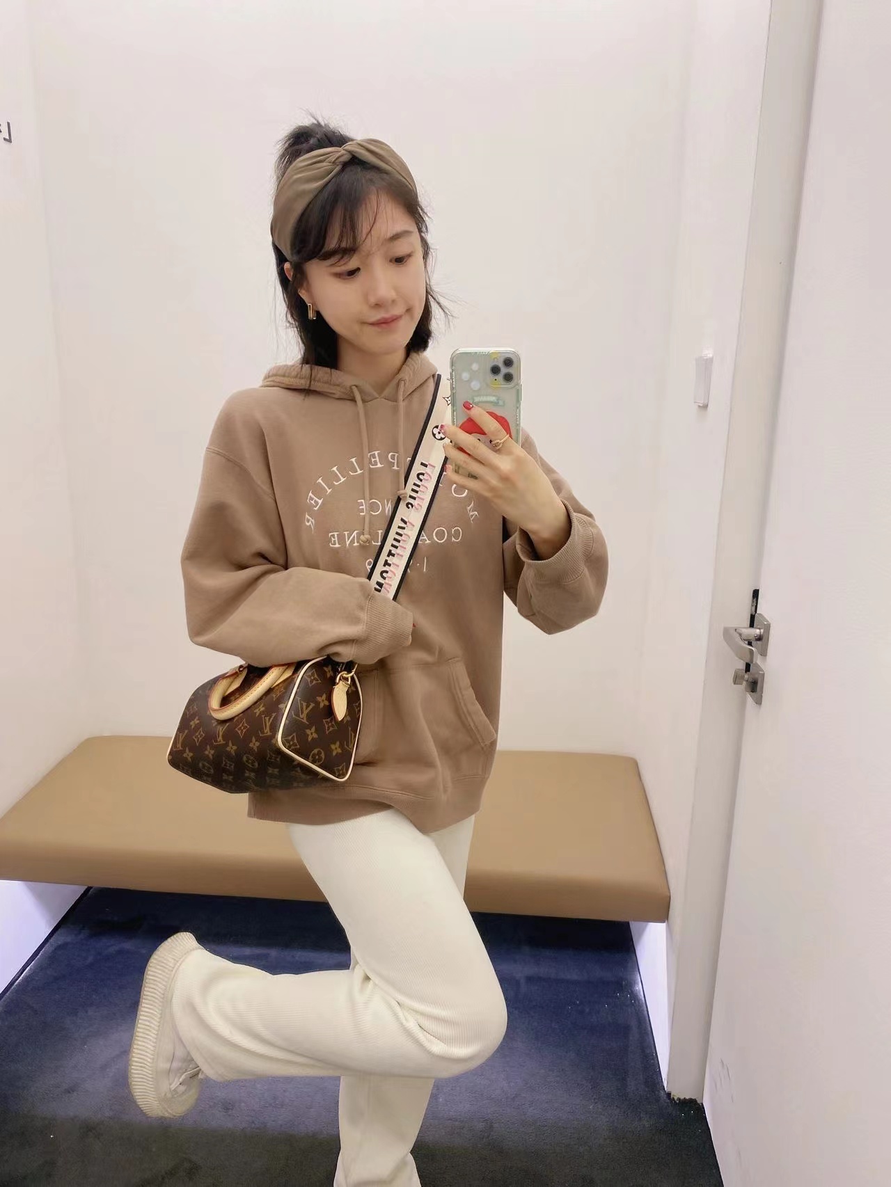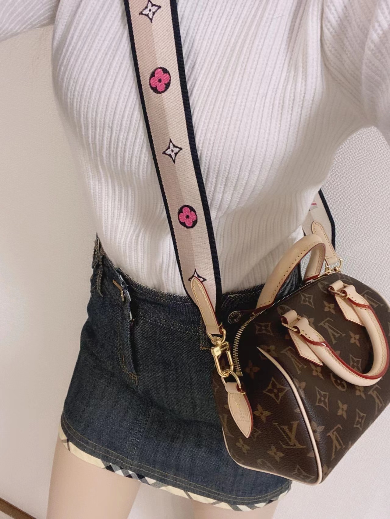 我觉得这个尺寸算是我个人认为的最好,时髦感和实用度都更高。因为是老花搭配的限量彩色肩带,入手还是很可啦!