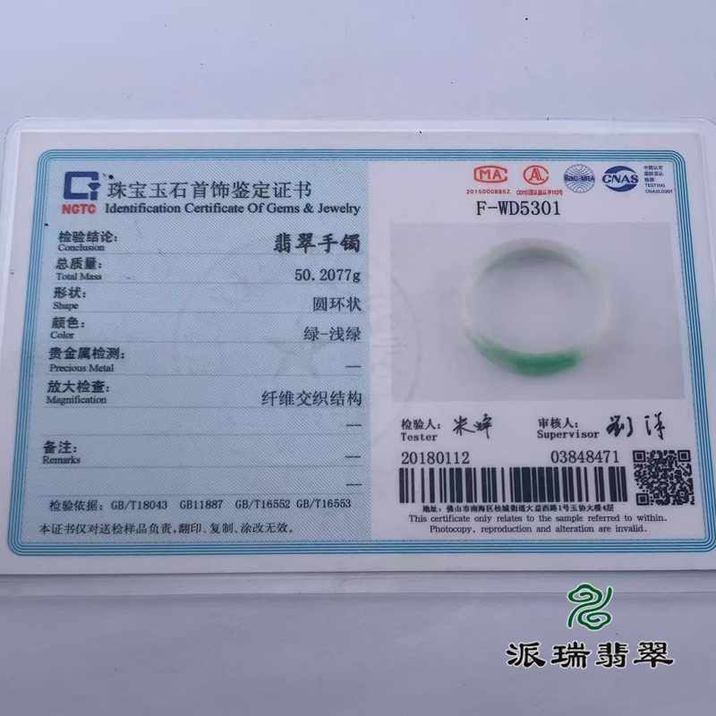 派瑞翡翠 翡翠手镯 糯种 浅绿色
