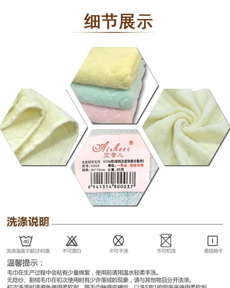 自营(菲小主)-艾舍儿 无捻提花毛巾