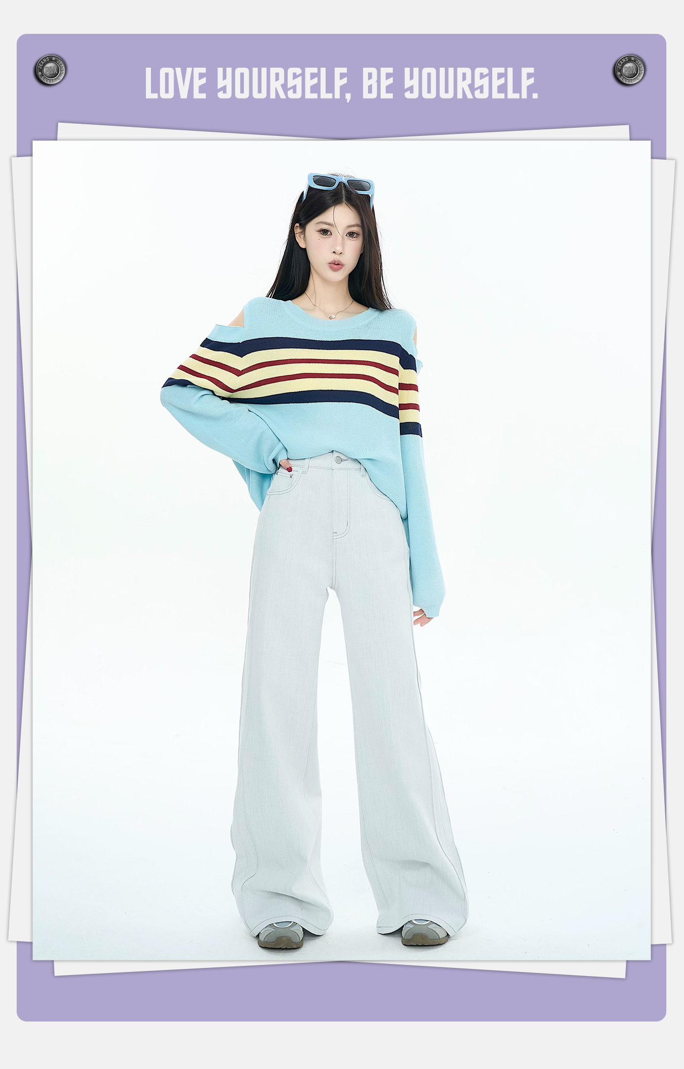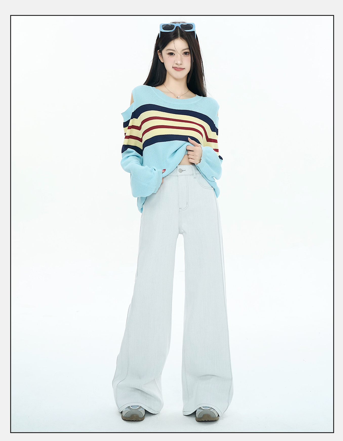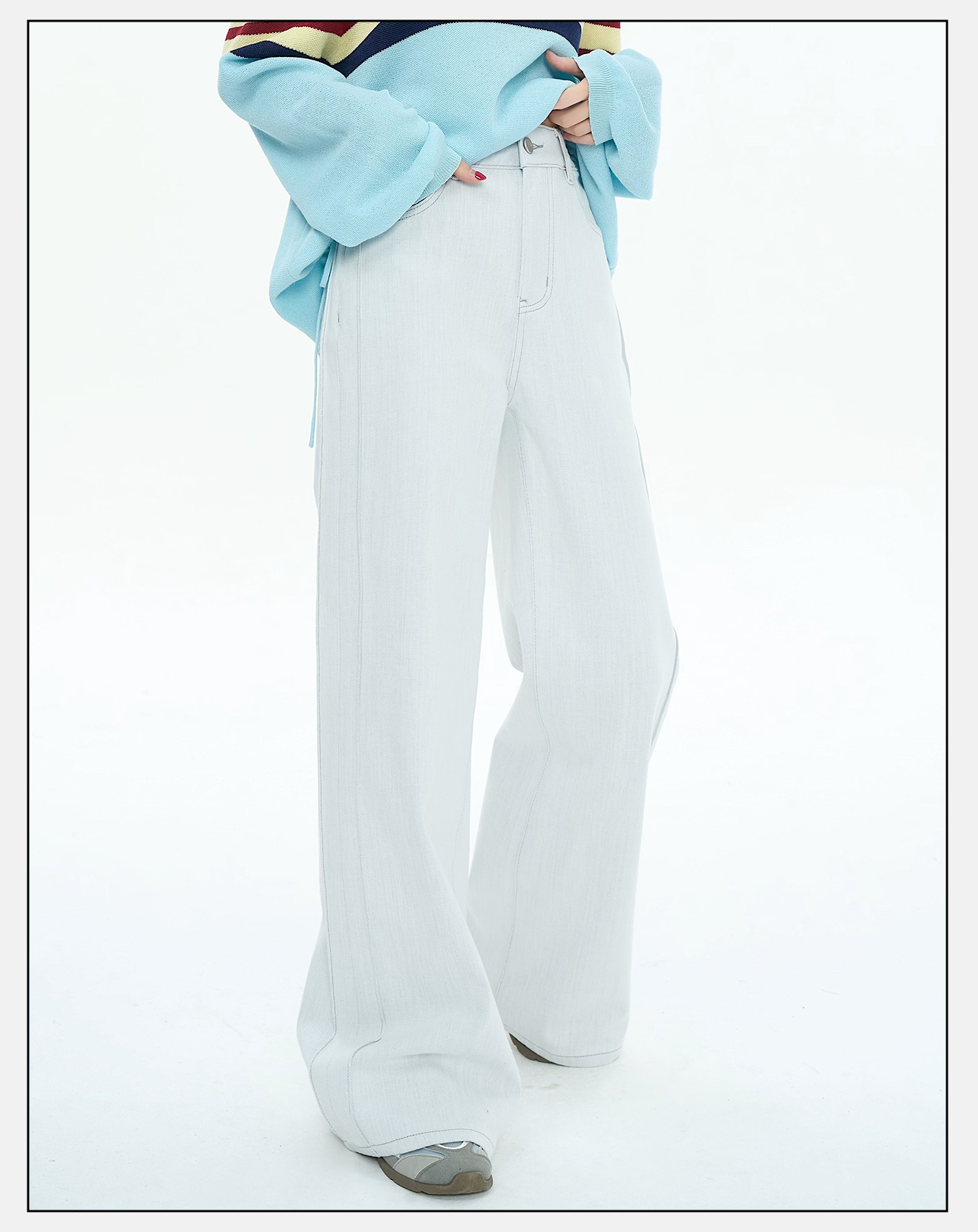 P&X设计师女装2025秋季牛仔裤宽松女长裤阔腿裤825310240 灰白