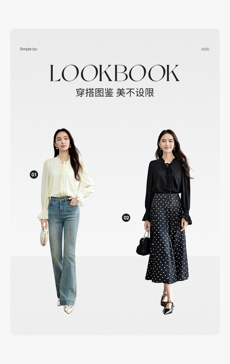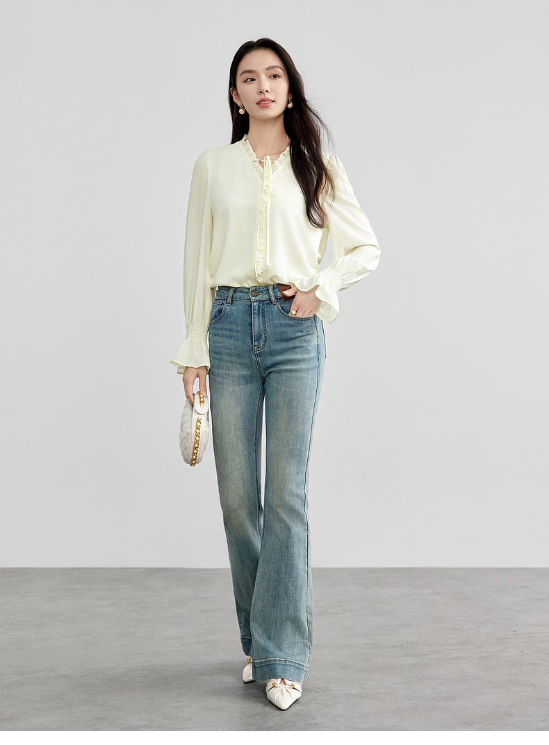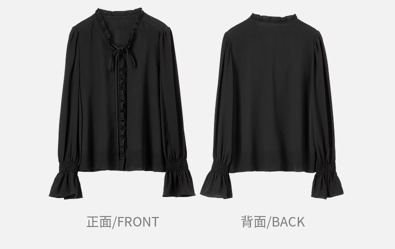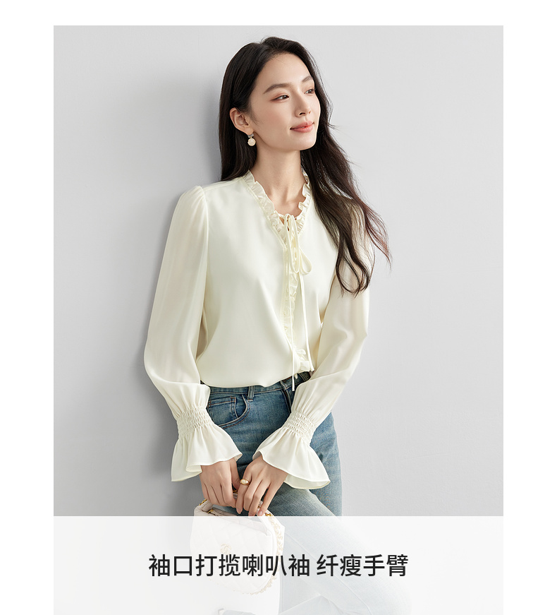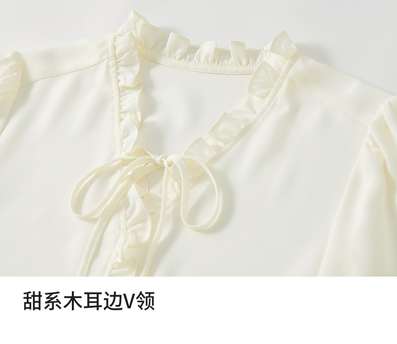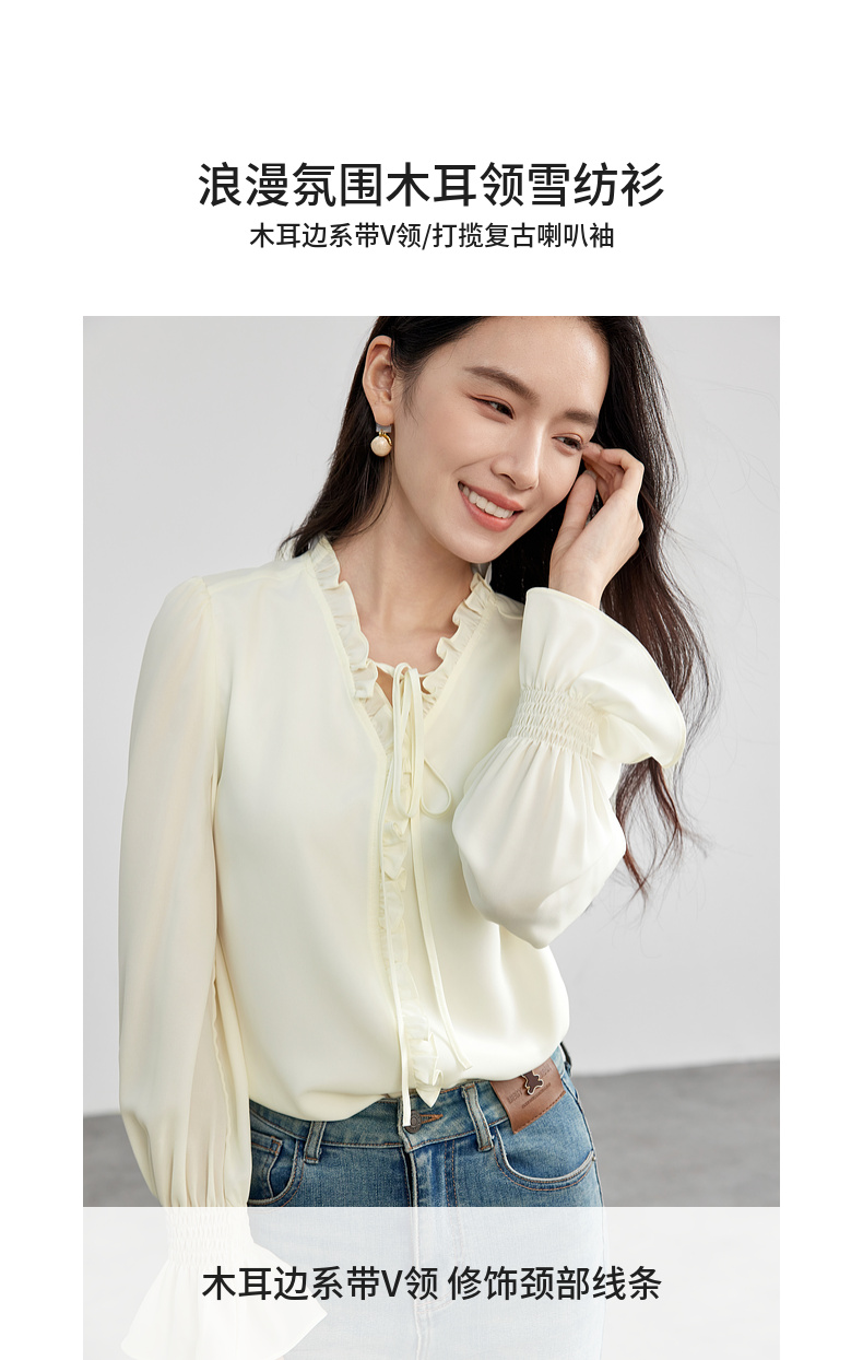 【内购】法式木耳边V领梭织乱麻轻盈雪纺衫通勤荷叶边V领直身廓形衬衣-151V57909