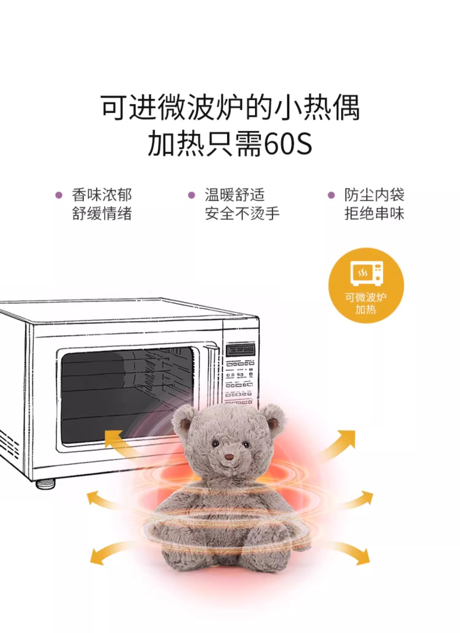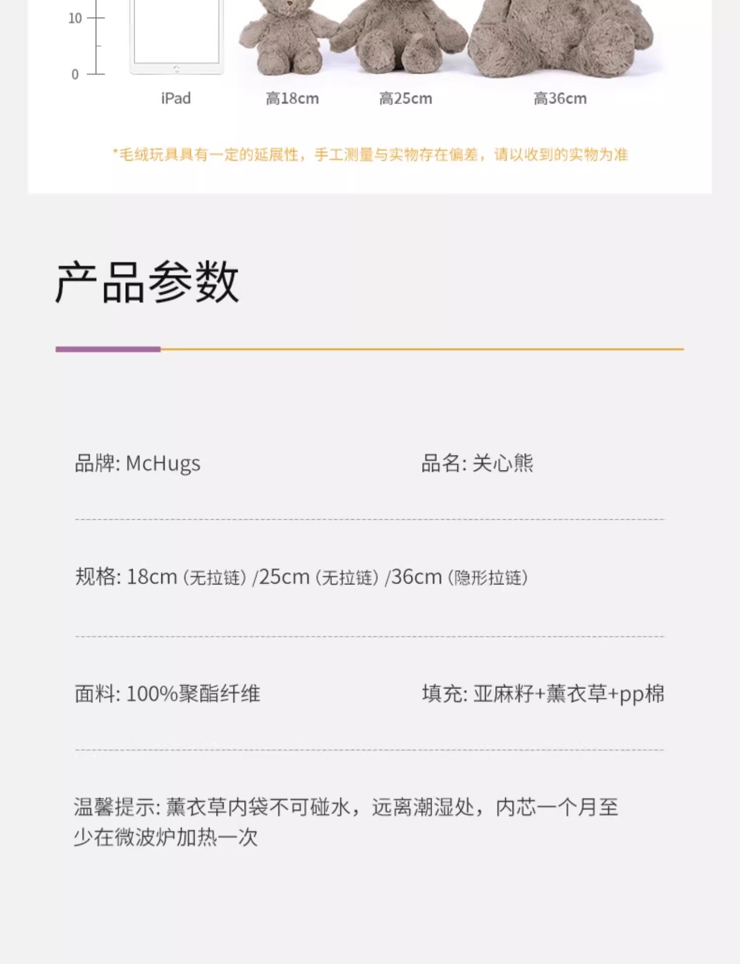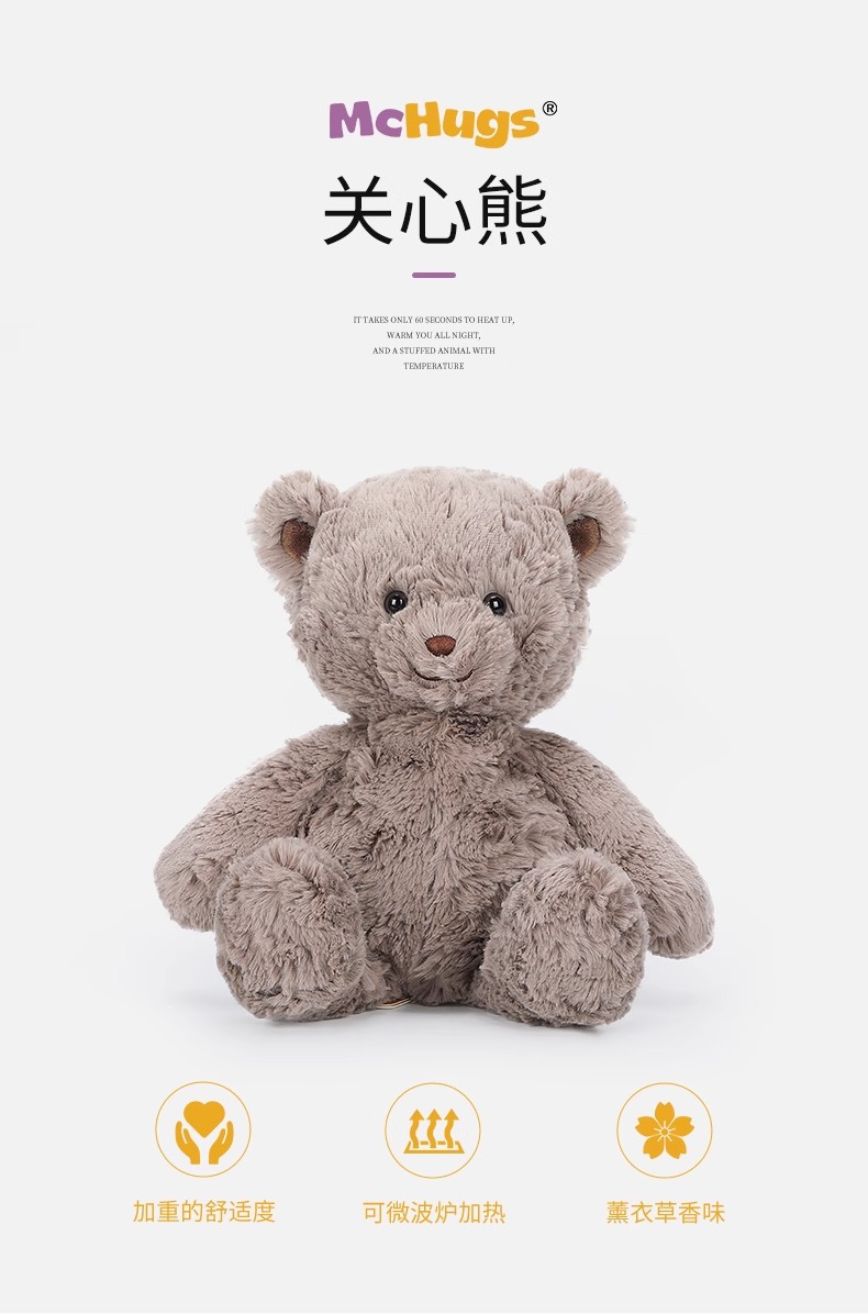 McHugs关心熊玩偶公仔毛绒玩具可微波炉薰衣草睡觉抱公仔娃娃礼品 3岁+