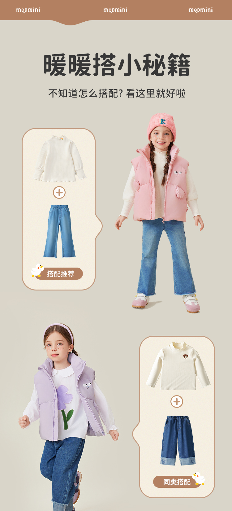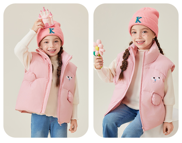 【清仓捡漏】【90绒 马甲】【90-140】【MQDmini】女童冬款加厚保暖羽绒立领马甲