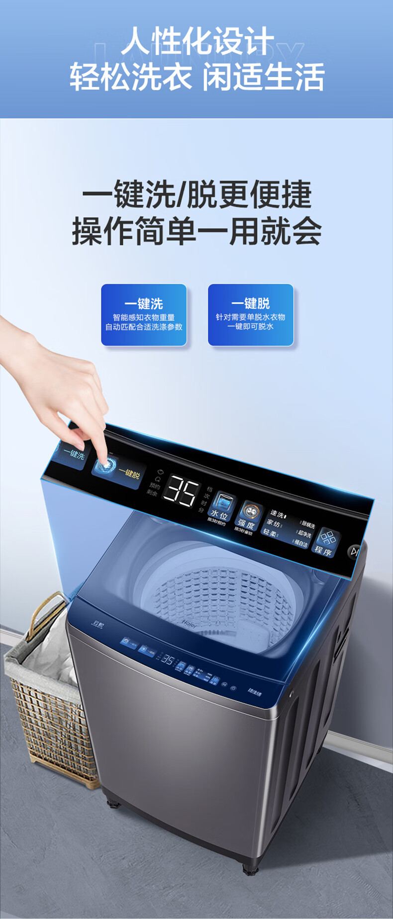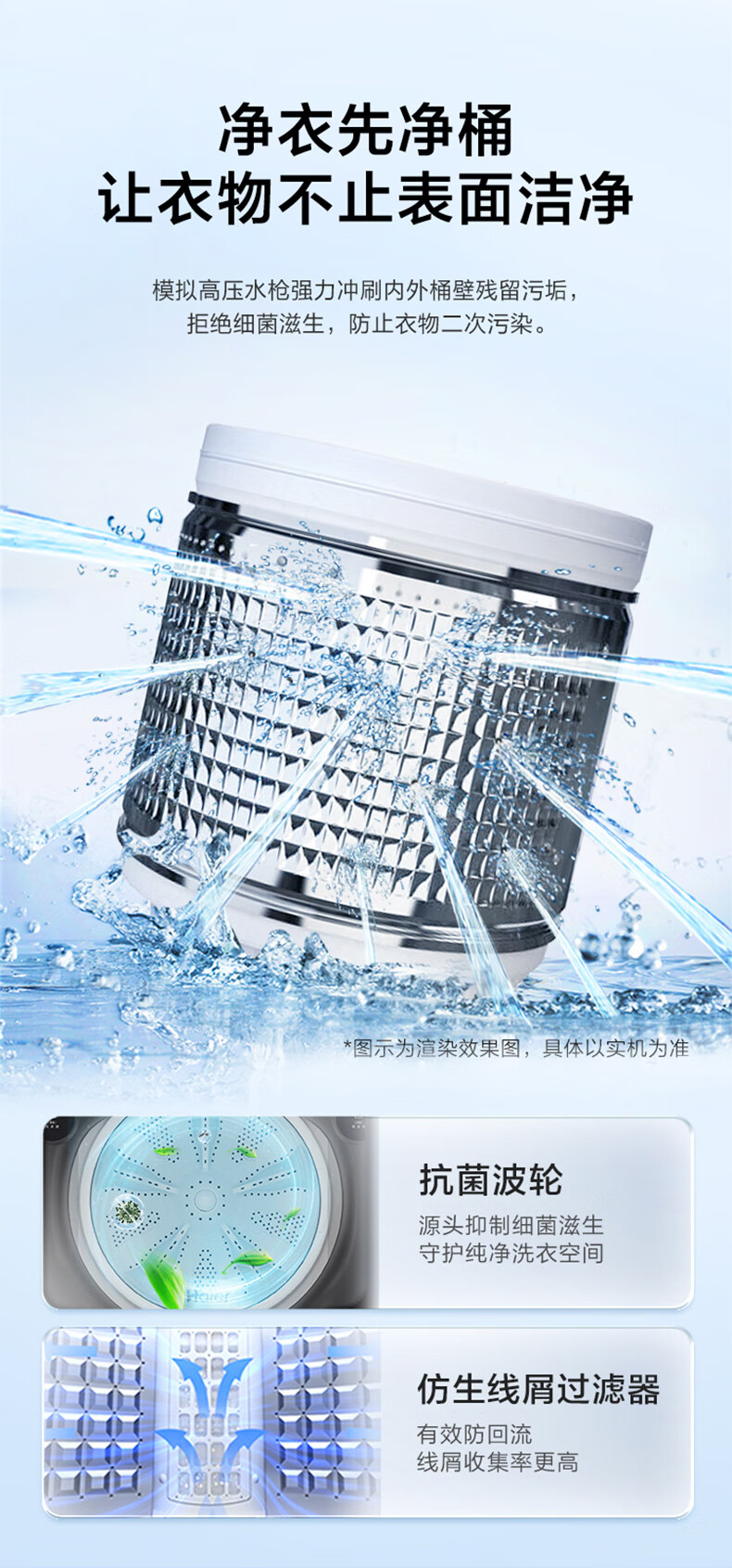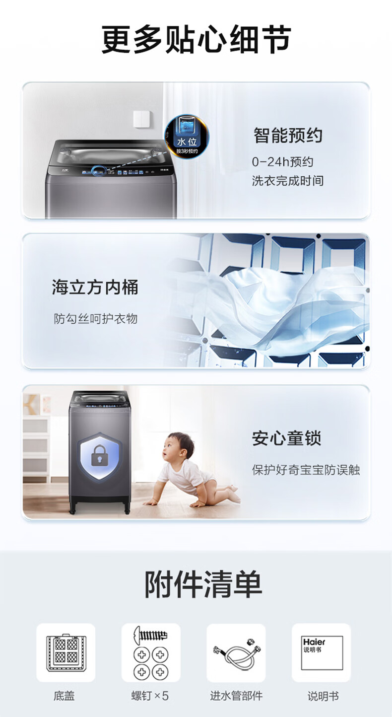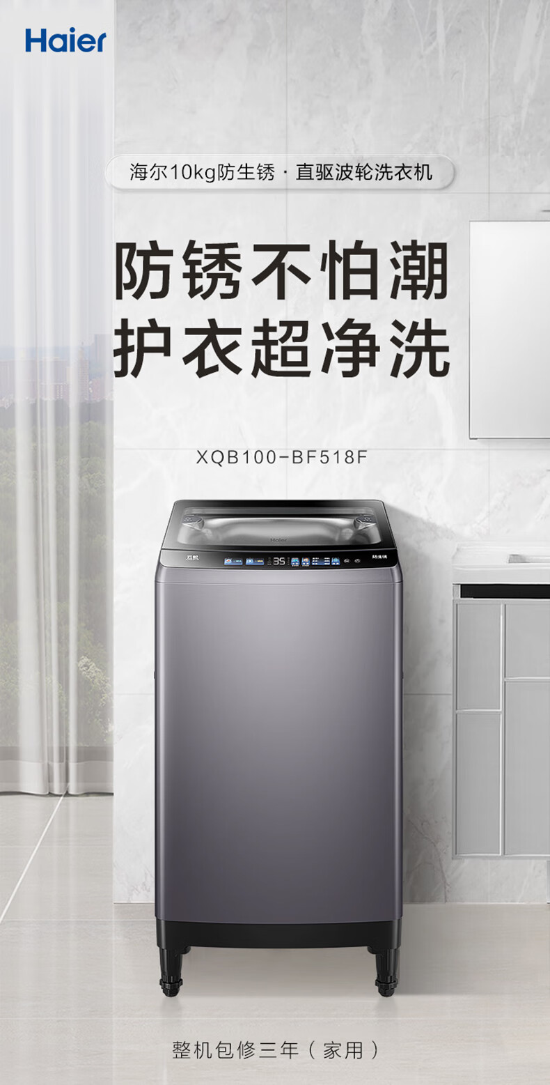 海尔 XQB100-BF518F 【防生锈材料科技幂动力少缠绕】 直驱变频 智能易 超净洗波轮洗衣机 10公斤