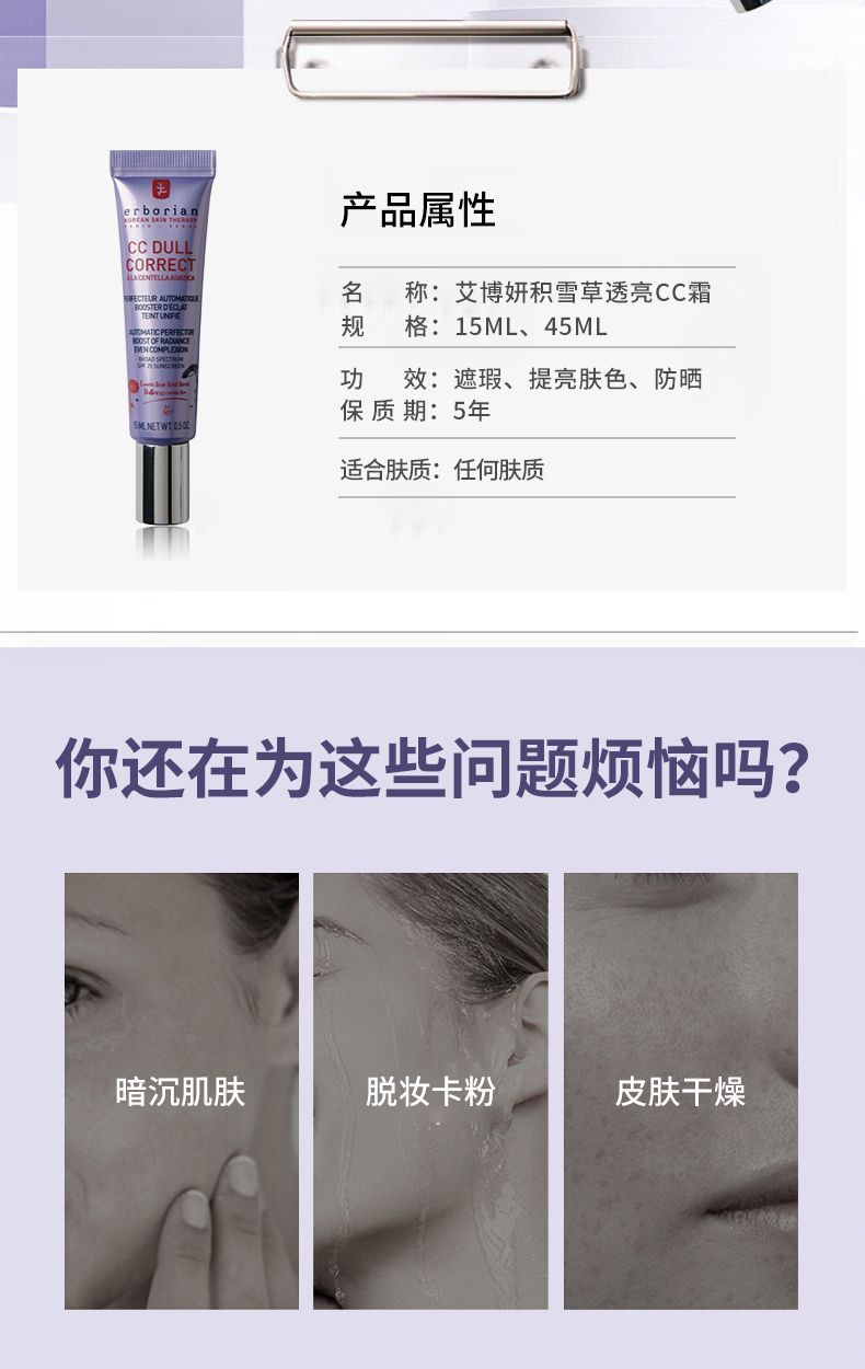 艾博妍CC Dull透亮CC霜15/45ml 遮瑕隔离