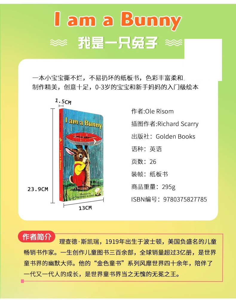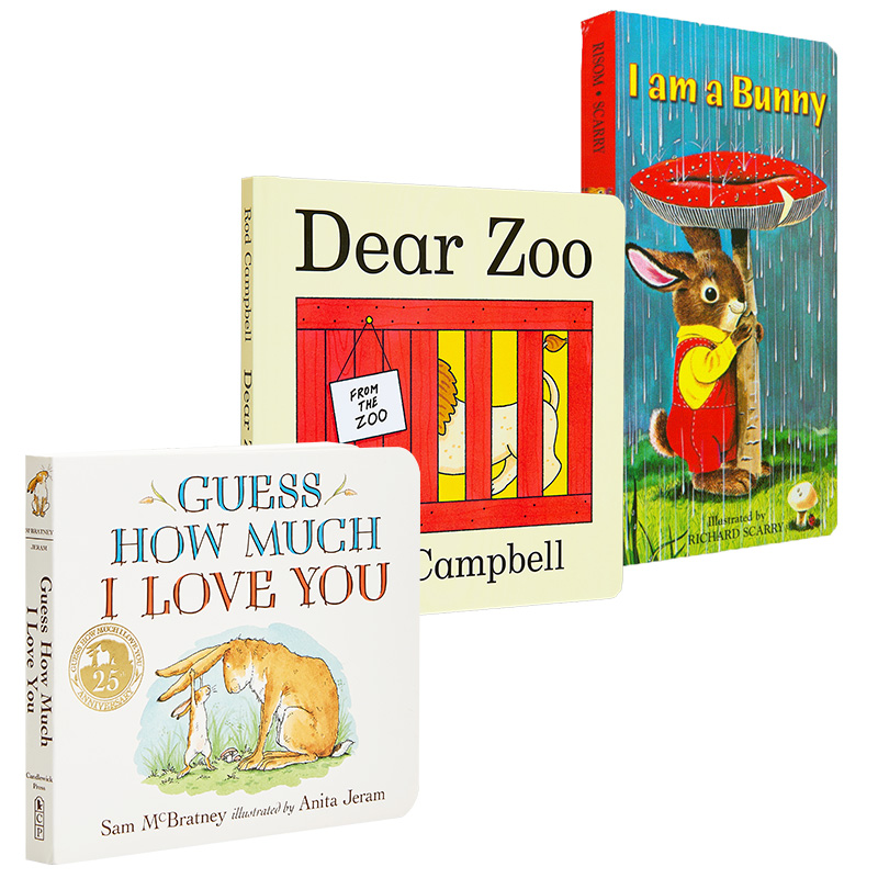 【中商原版】英文原版低幼儿童纸板书3册 dear zoo动物园 I Am a Bunny 我是一只兔子 猜猜我有多爱你 廖彩杏赠音频