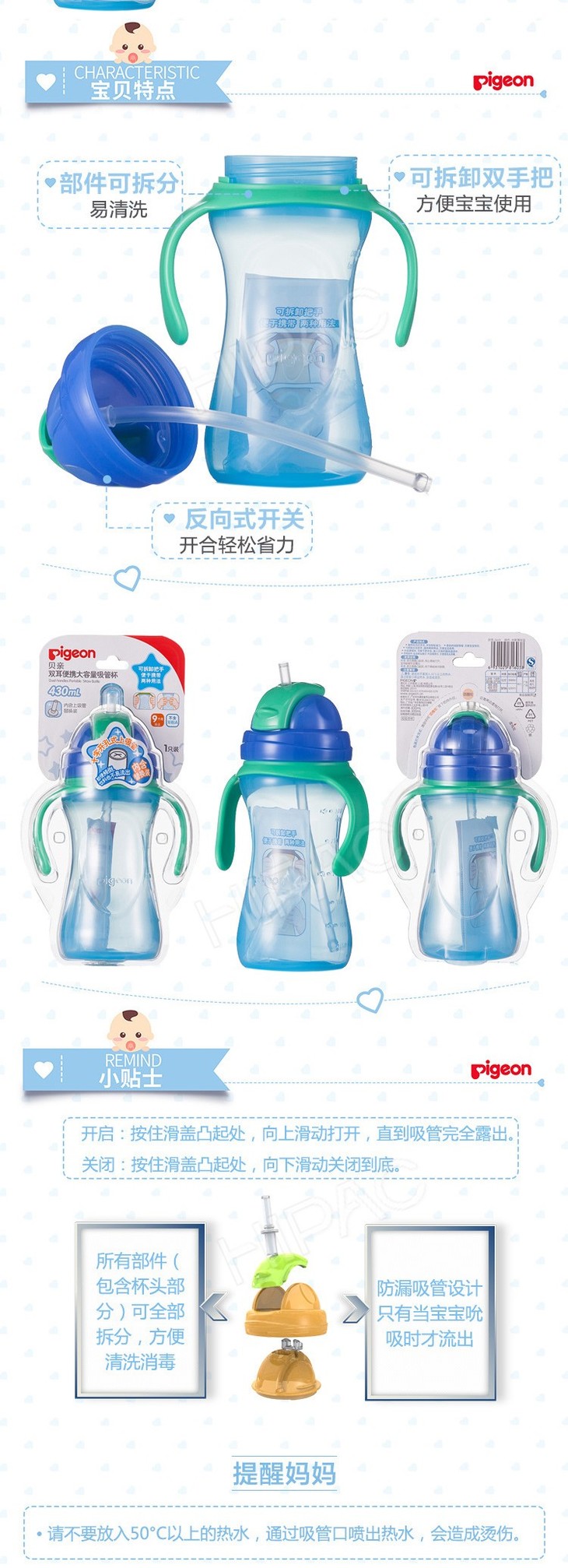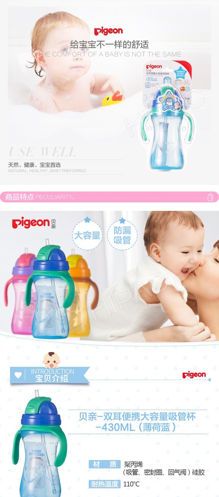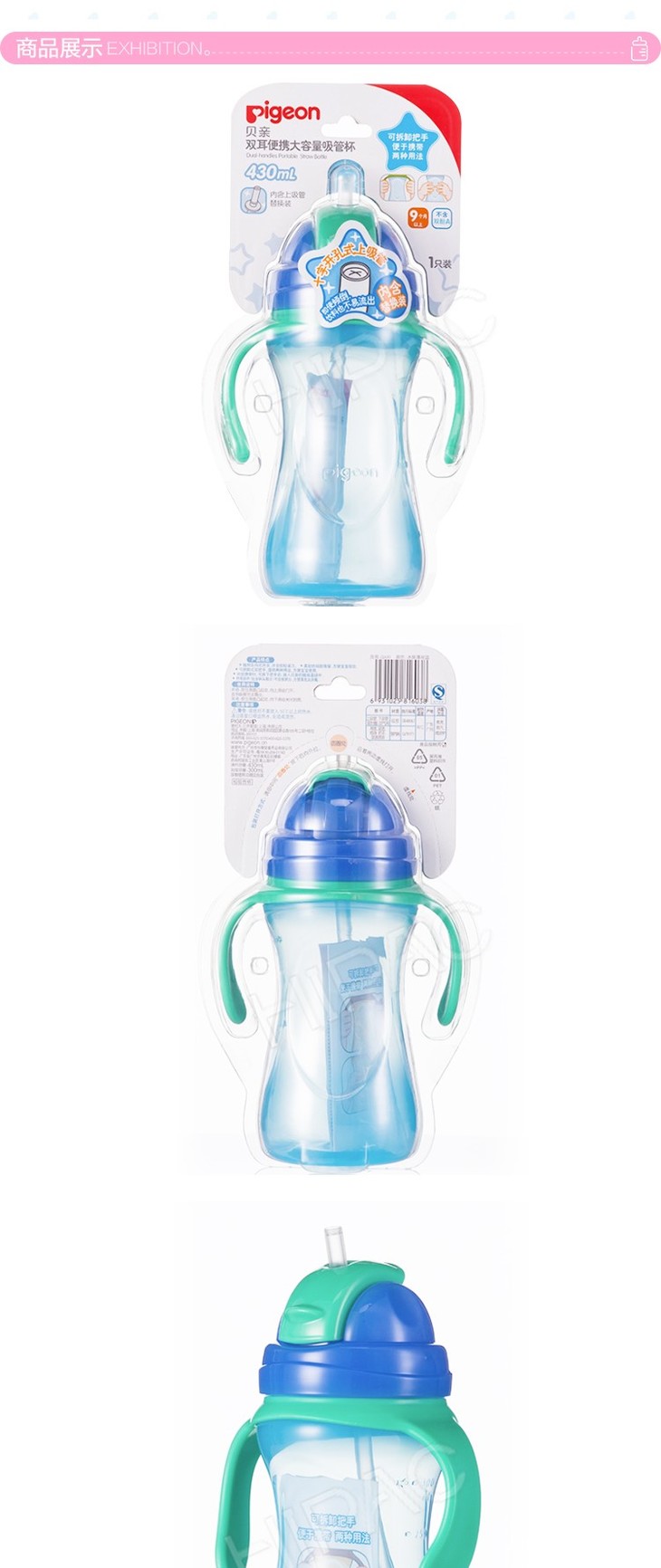 【一般贸易】贝亲 双耳便携大容量吸管杯(冰爽薄荷蓝)DA91