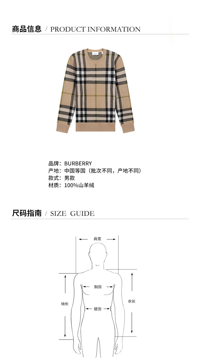 BURBERRY/博柏利 2021款 男士针织衫/毛衣 男款山羊绒圆领长袖针织衫毛衣 80412861