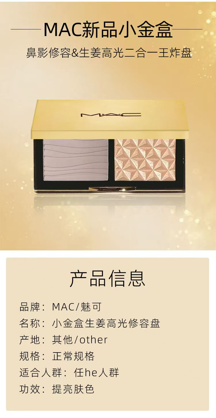 【一般贸易】MAC魅可 小金盒生姜高光修容盘7g 哑光鼻影阴影细闪提亮
