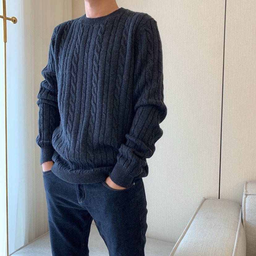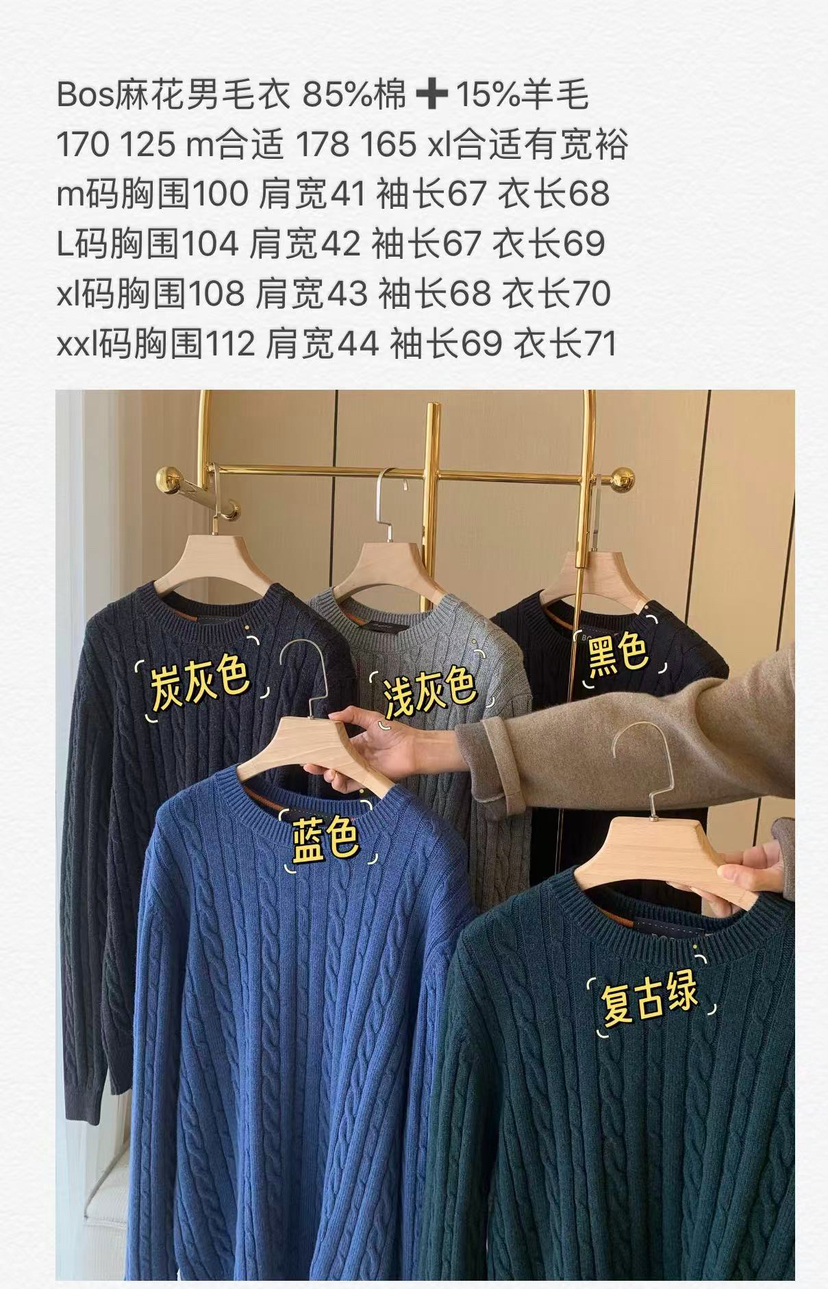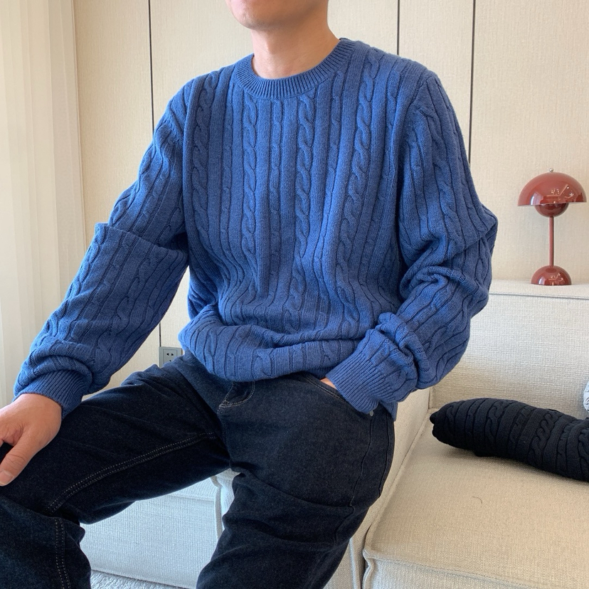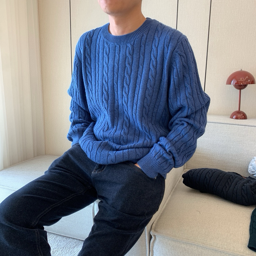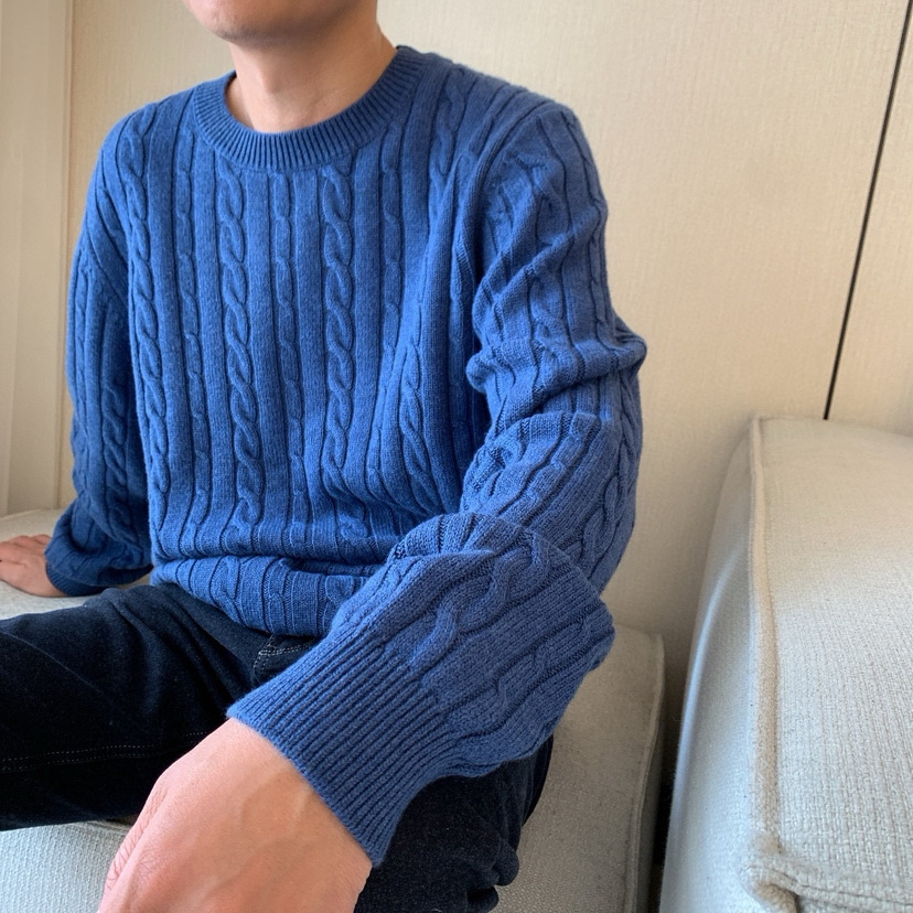 1031-1 亲戚工厂 一手渠道货 BS 棉/羊毛混纺 柔软亲肤 麻花针织毛衣 老朱穿L