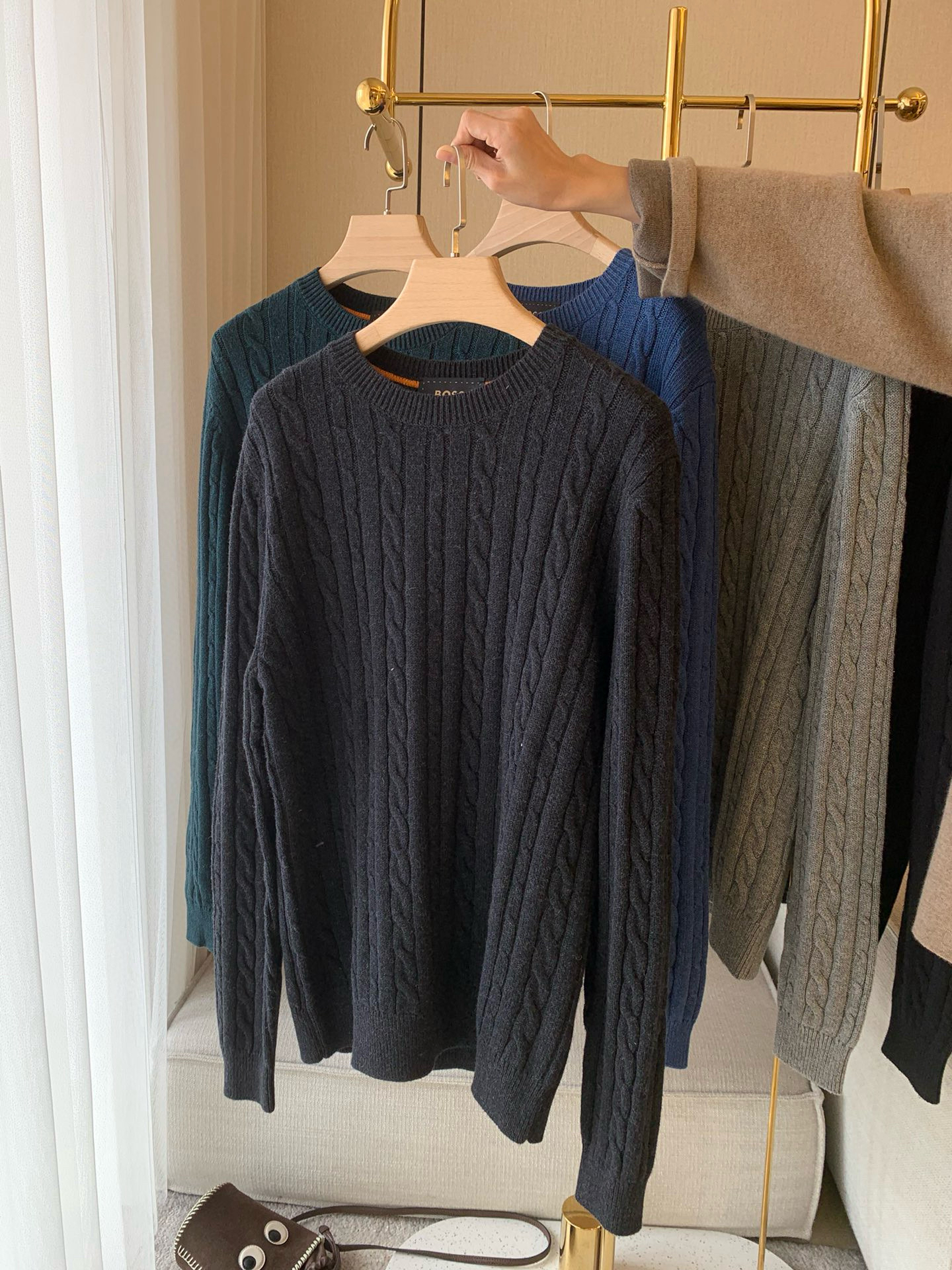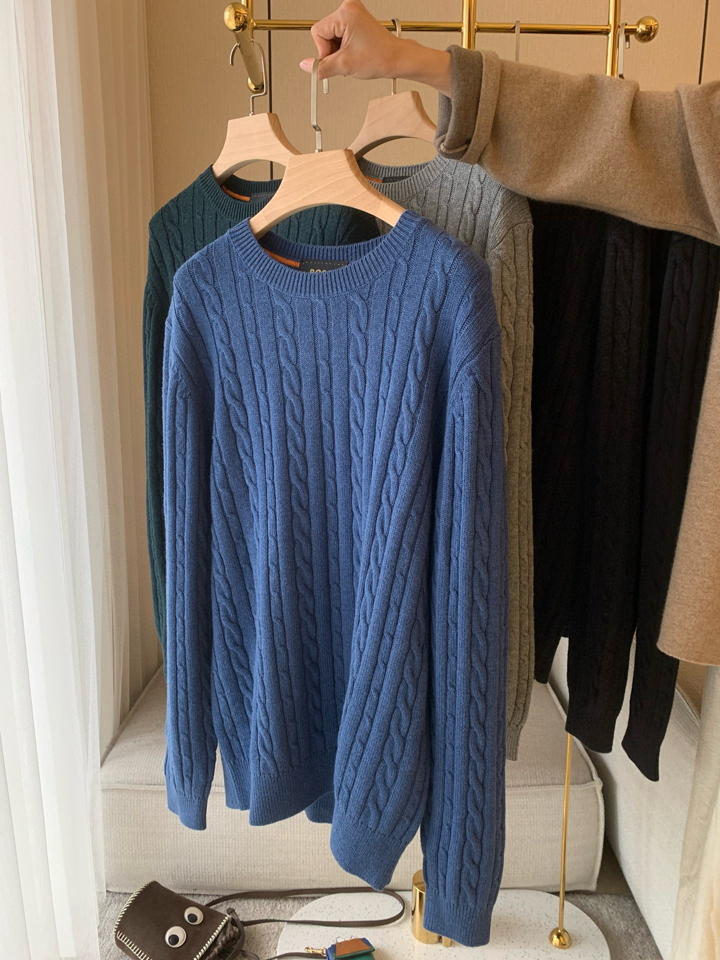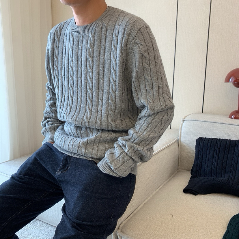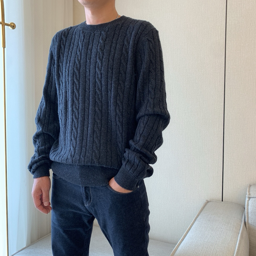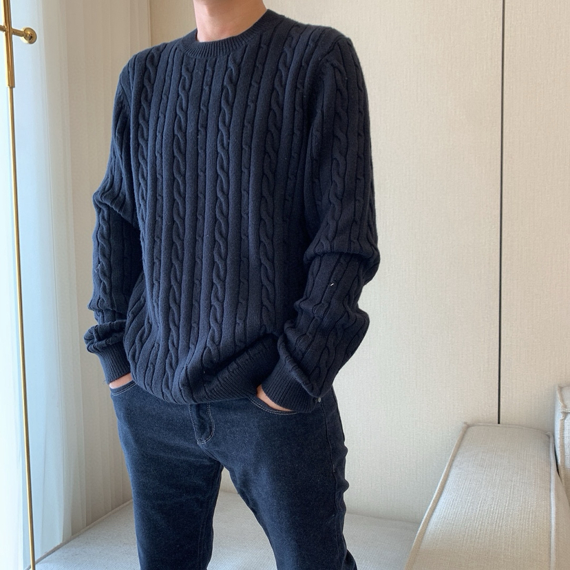 1031-1 亲戚工厂 一手渠道货 BS 棉/羊毛混纺 柔软亲肤 麻花针织毛衣 老朱穿L