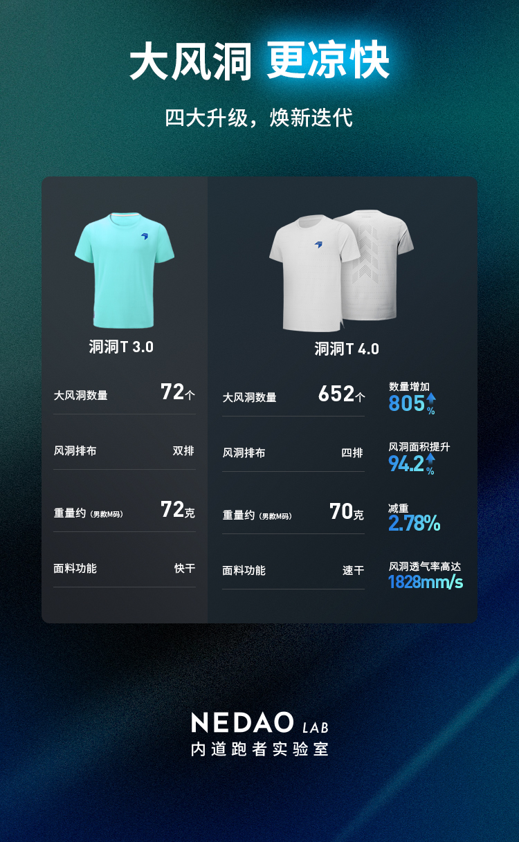 NEDAO内道洞洞T春夏新款女马拉松跑步训练透气轻量风洞短袖T恤