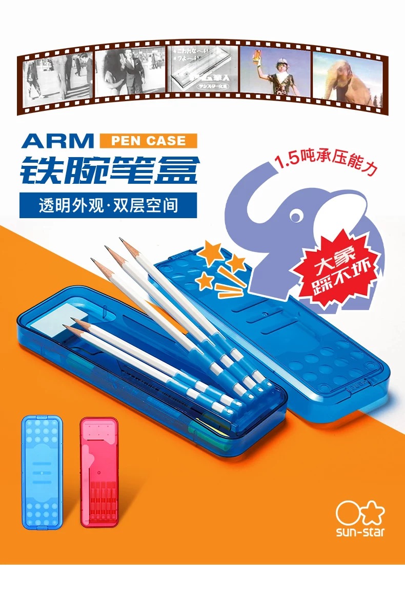 日本SUN-STAR太阳星多功能铁腕笔盒抗压强不易坏双层铅笔盒