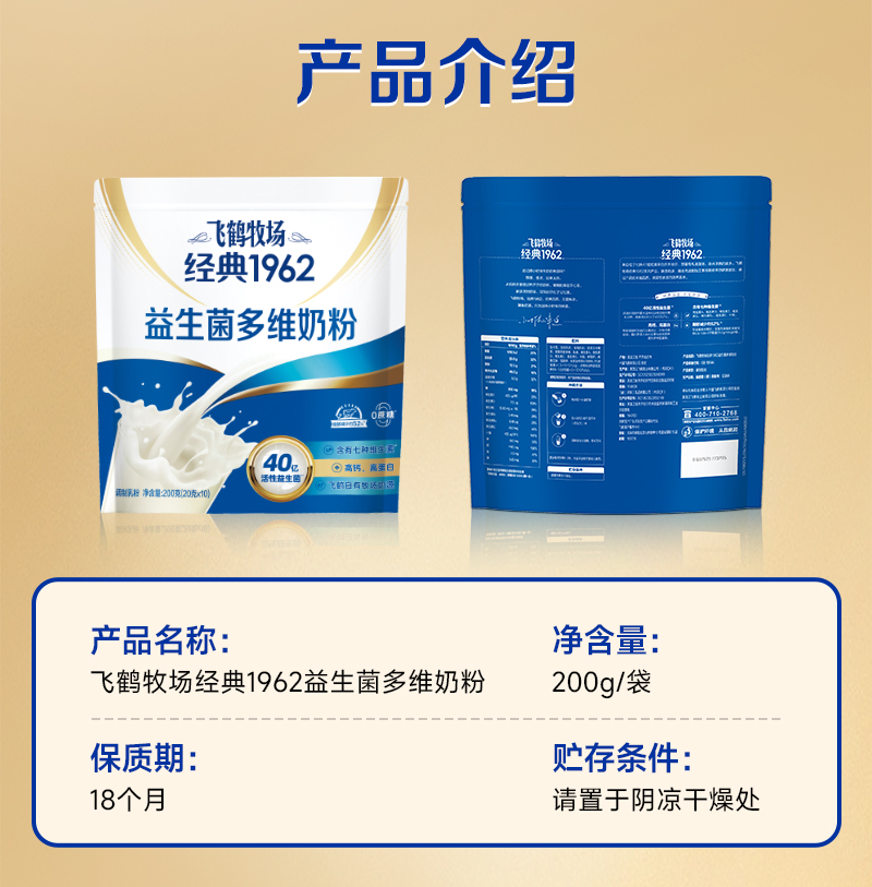 飞鹤牧场 经典1962益生菌多维奶粉