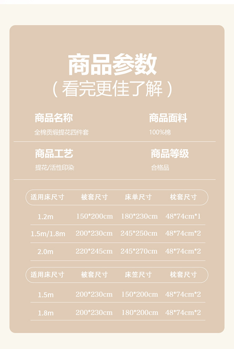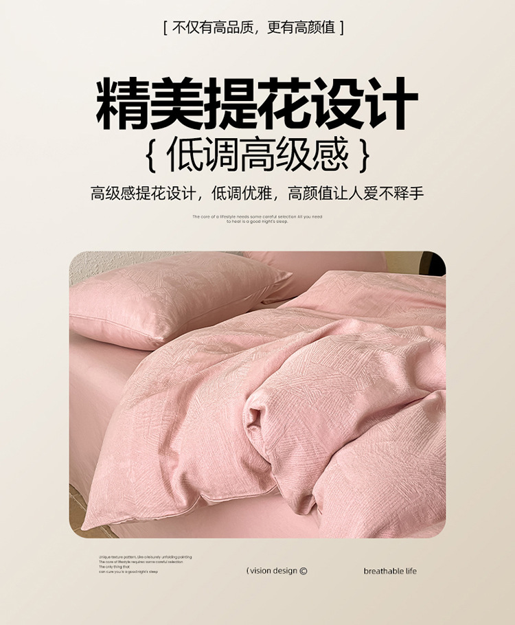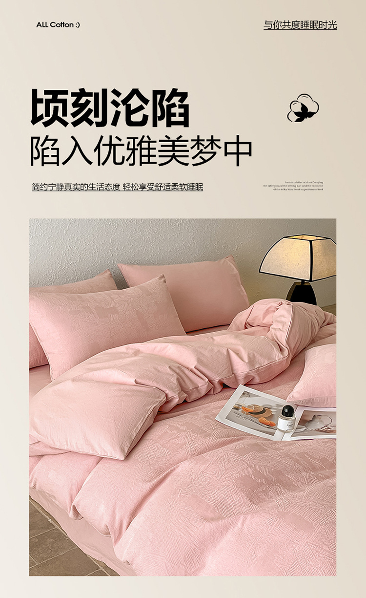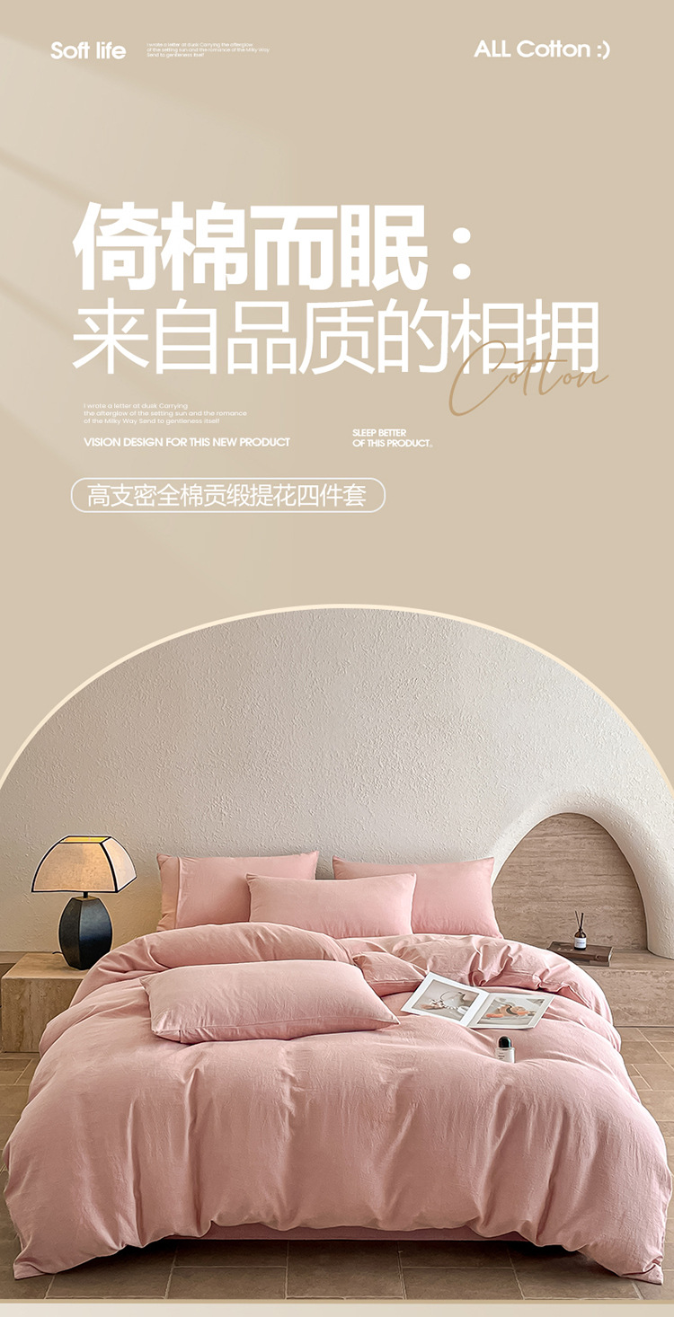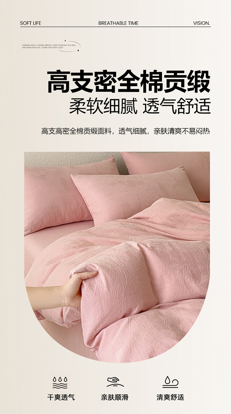 【60S全棉贡缎提花四件套】全棉四件套60S提花贡缎床品件套纯色4件套