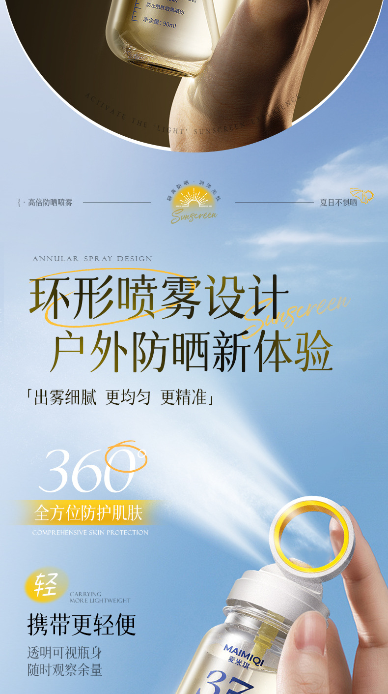 高倍水感防晒【小巧便携!随时随地补喷】爆款美白防晒喷雾抗皱多效隔离防晒霜可上飞机小光圈爆晒不黑,户外防晒值拉满。ry
