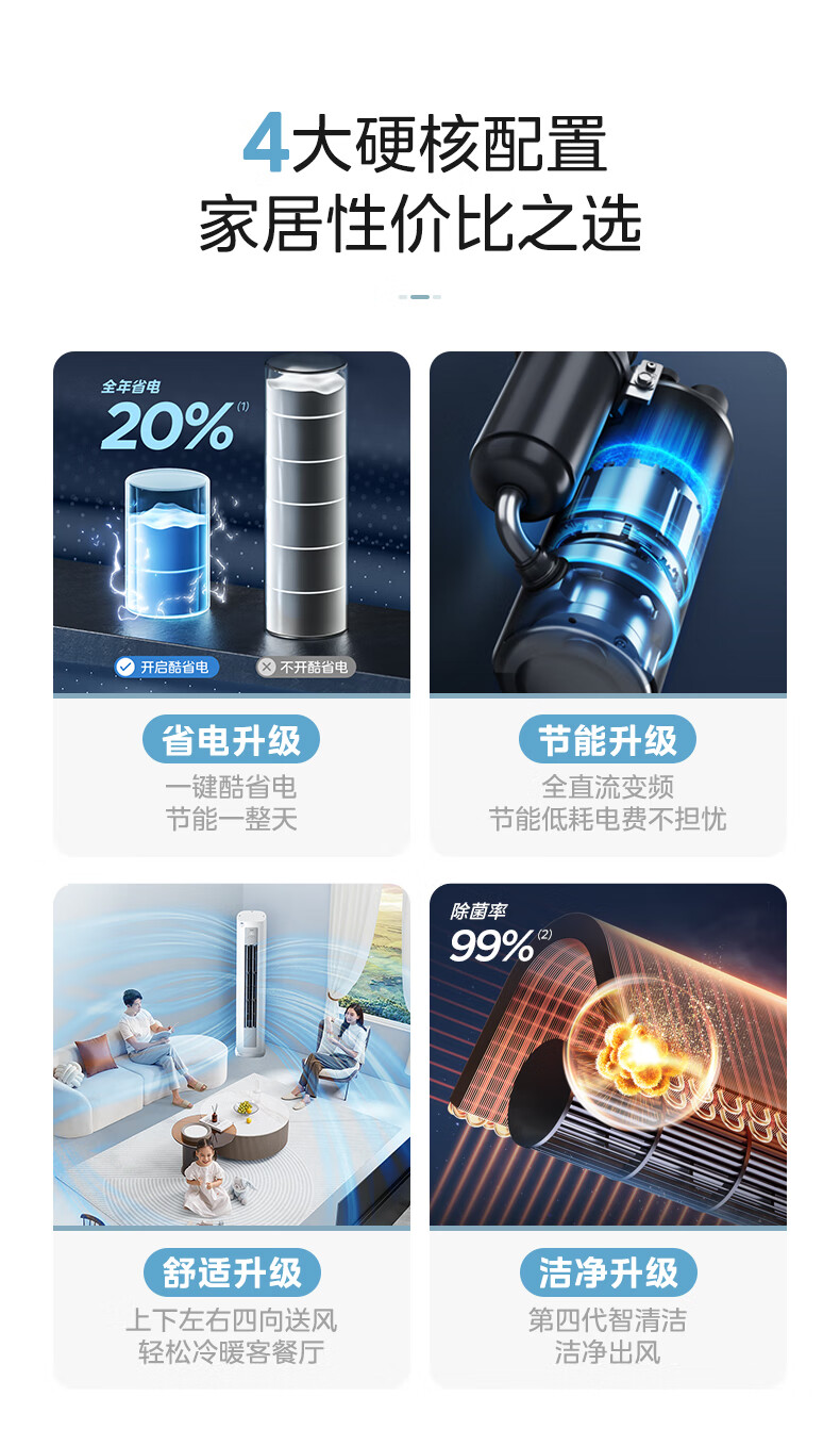 美的 三匹 京皓Pro柜机 冷媒防泄漏 高温除菌 1550m?大风量 第四代智清洁 一键酷省电 wifi智能操控 一级全直流变频 KFR-72LW/MJD2-1