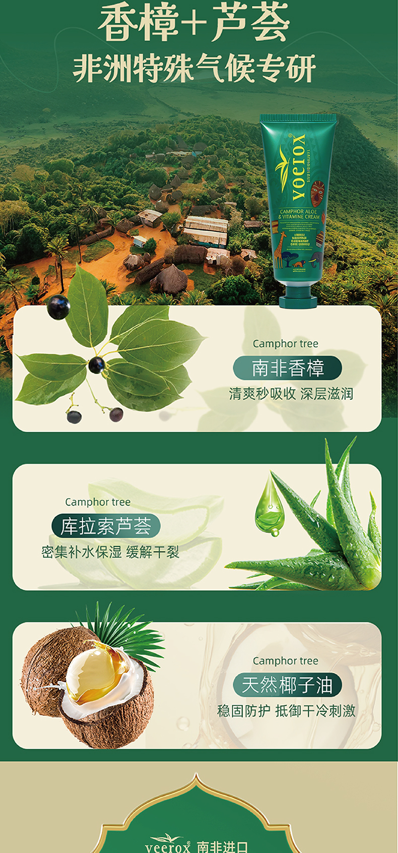 南非进口 Veerox 韦林适 草本香樟修护小绿膏 50mL 软管便携