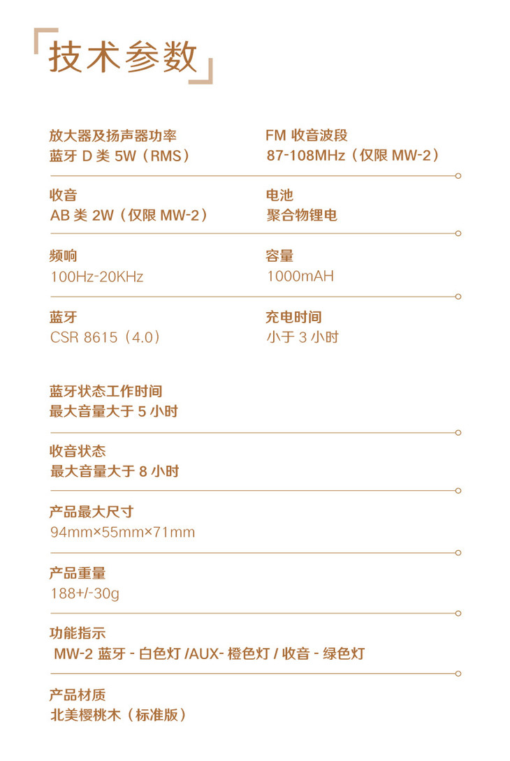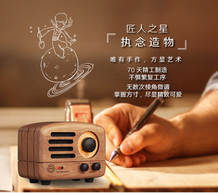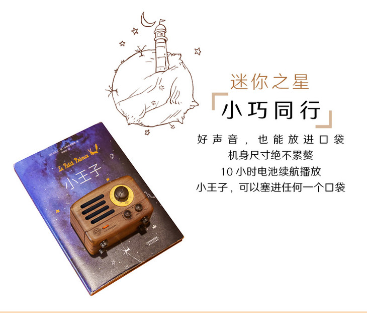 猫王收音机 猫王小王子樱桃木质复古便携式手机蓝牙音箱 迷你小音响无线蓝牙车载音响低音炮播放器收音机复古