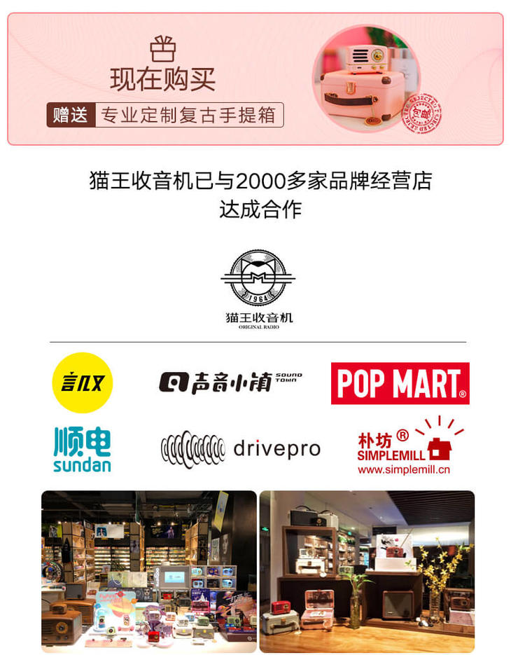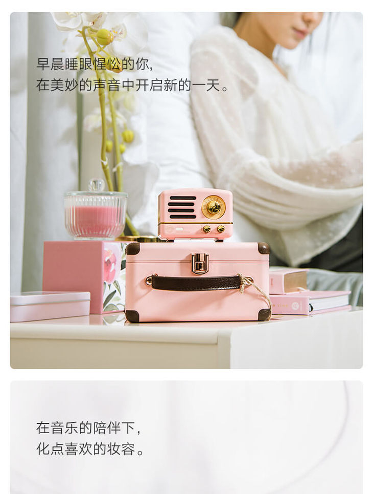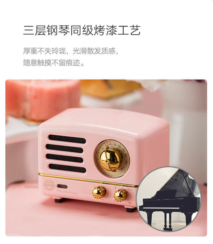 猫王收音机 猫王小王子奥黛丽粉便携蓝牙音箱迷你小音响音箱户外无线蓝牙手机可爱复古音响家用低音炮收音机