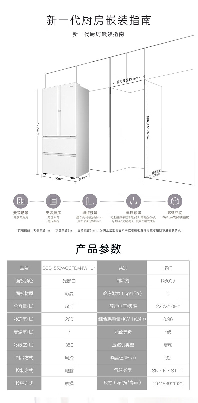 卡萨帝(Casarte)冰箱 BCD-550WGCFDM4WHU1