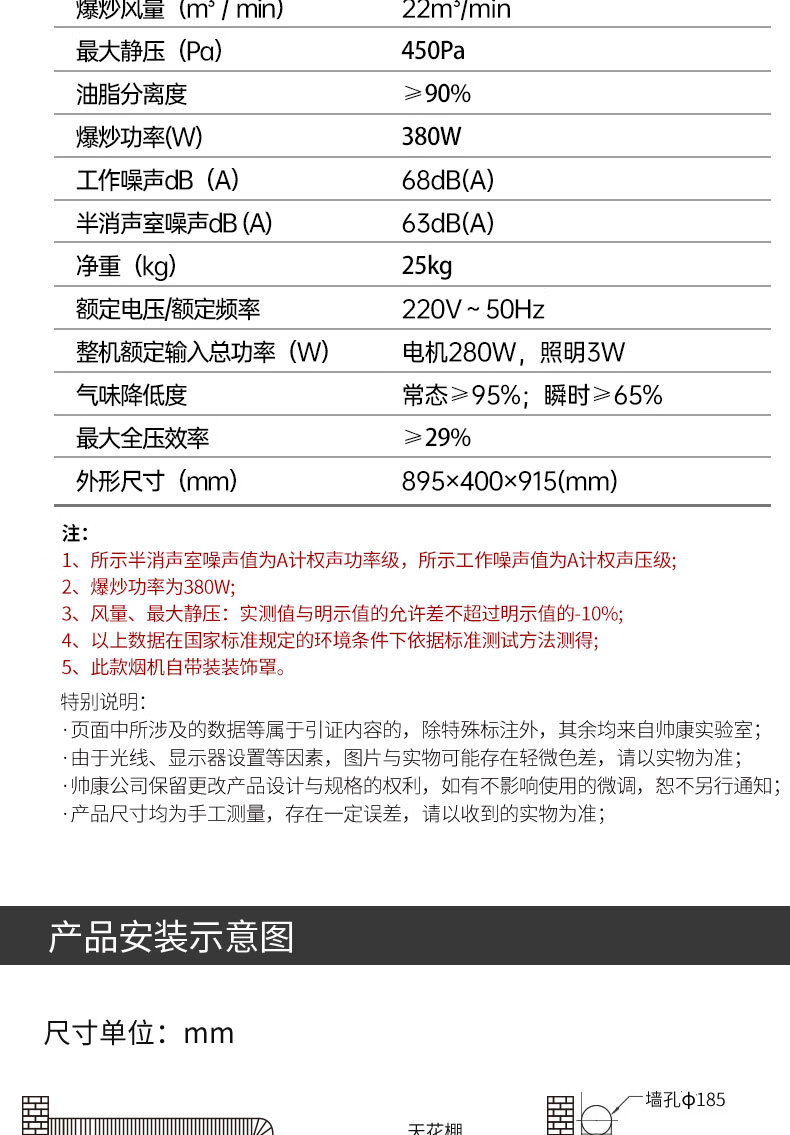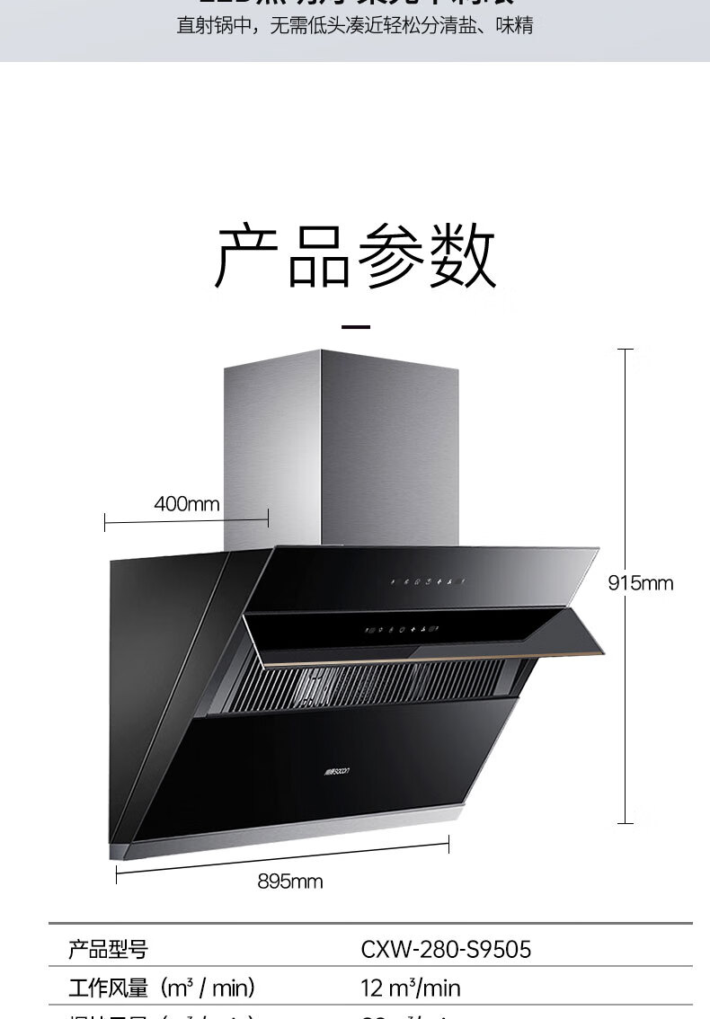 帅康(Sacon)抽油烟机CXW-280-S9505家用侧吸22风量大吸力挥手智控一键自清洗