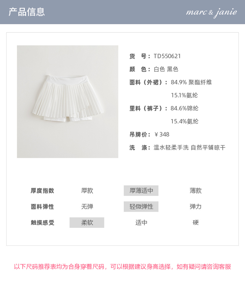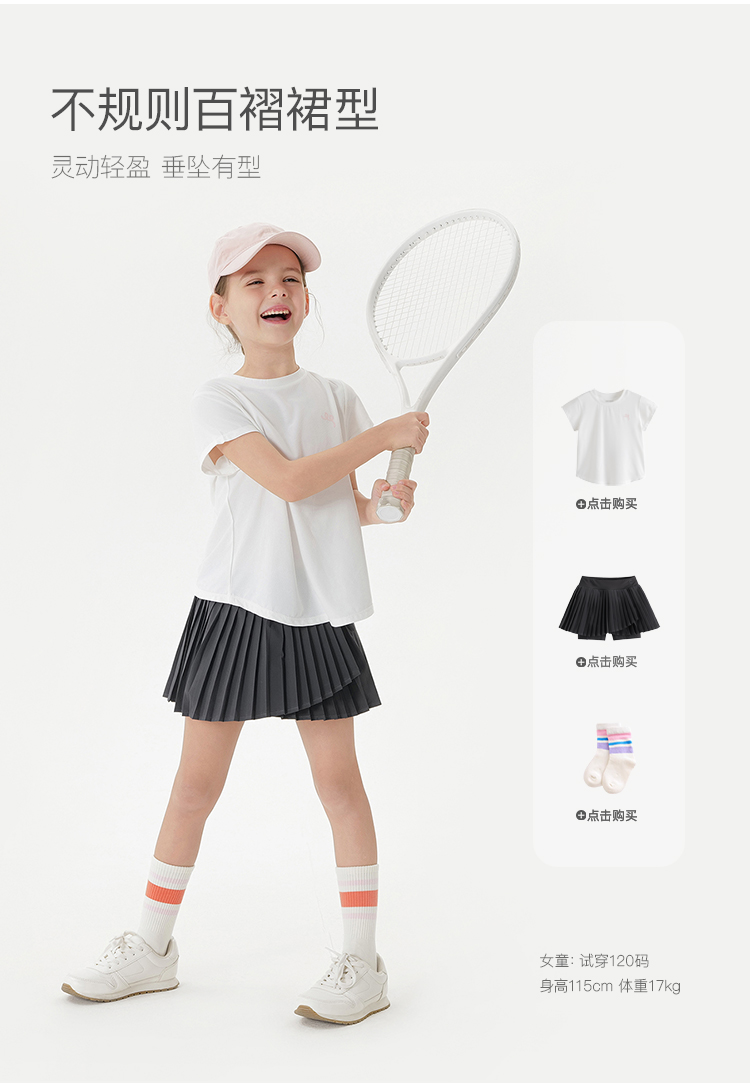 马克珍妮女童网球运动百褶裙裤儿童短裙半身裙2025夏装新款550621