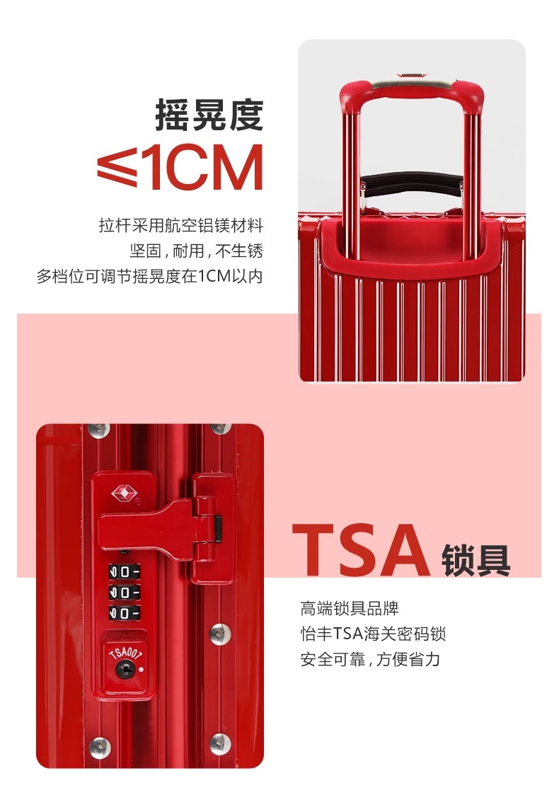 银座商务铝框行李箱万向轮铝镁合金旅行箱密码锁拉杆箱20寸 A-9128K