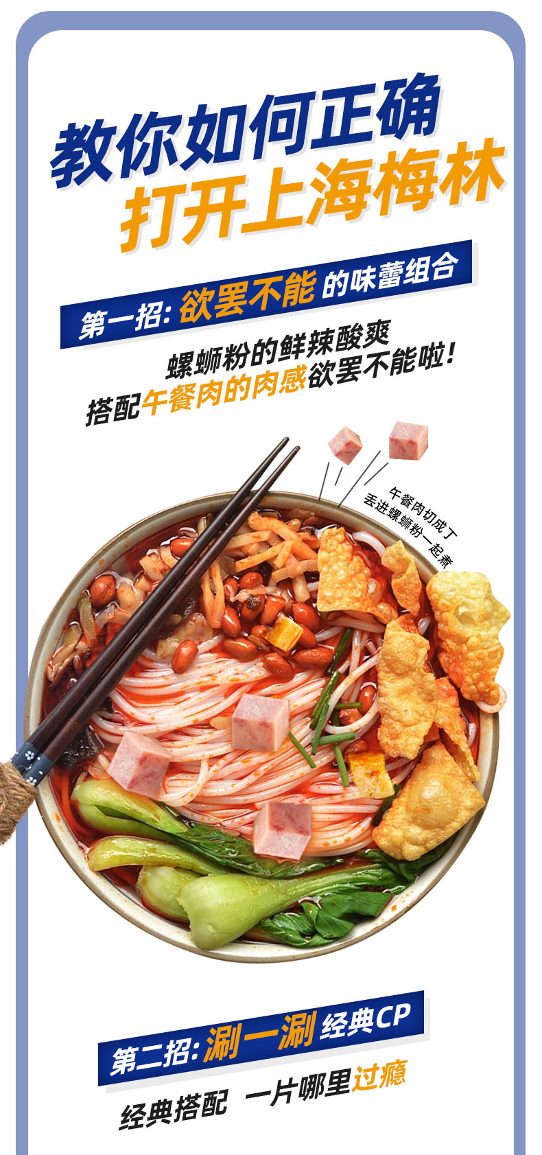 【美味的秘密!上海梅林午餐肉罐头】甄选品质原料,经典配料缔造舌尖美味,经验陈就经典口味,罐装即食火锅熟食火腿三明治即食L