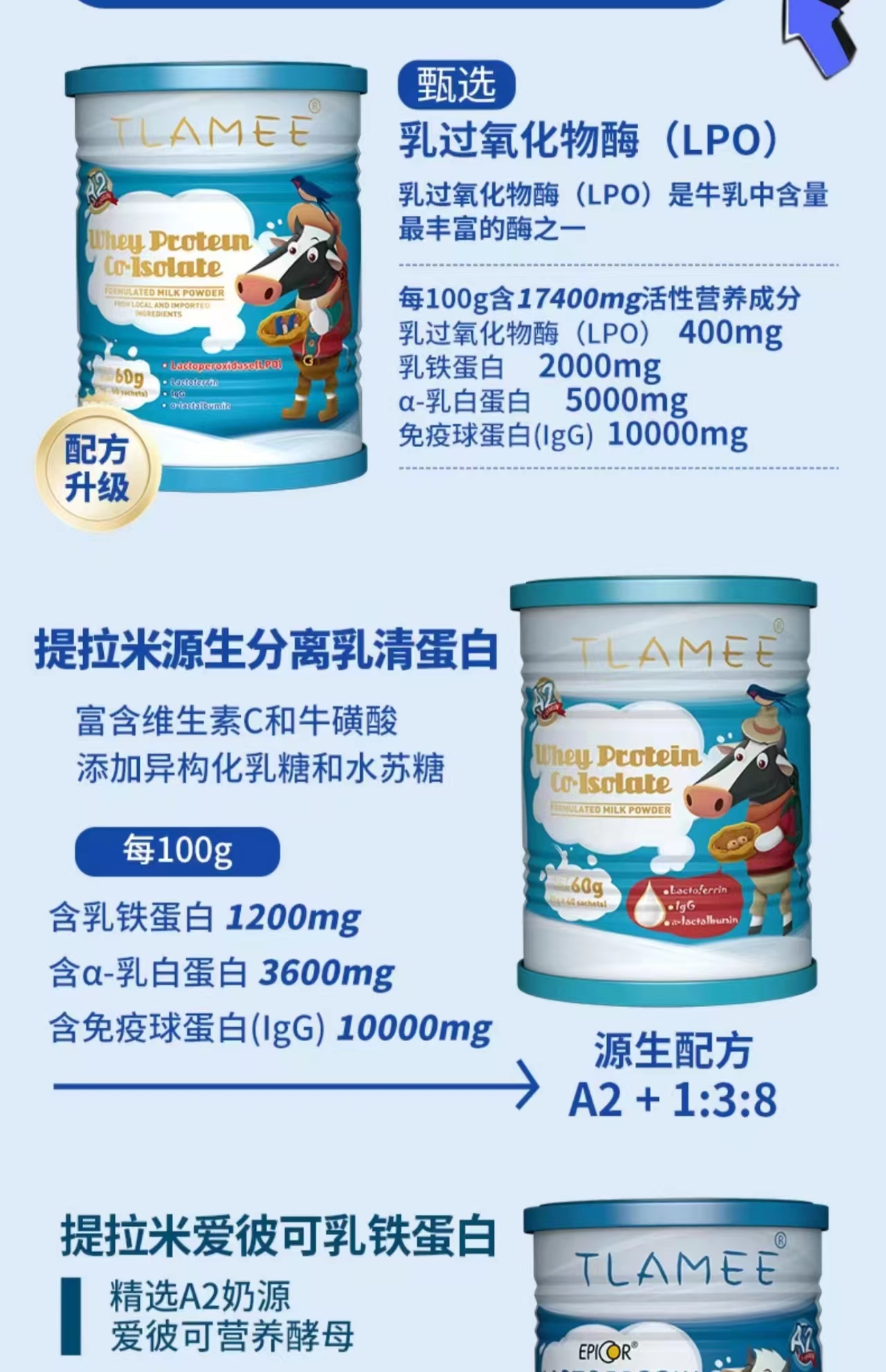 提拉米(Tlamee)儿童分离乳清蛋白乳铁蛋白调制乳粉 60g