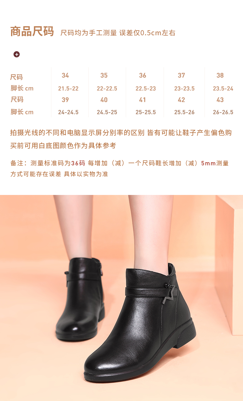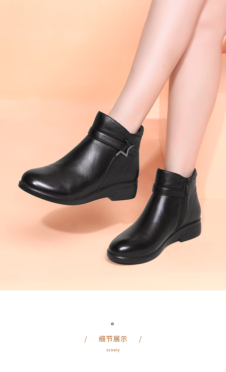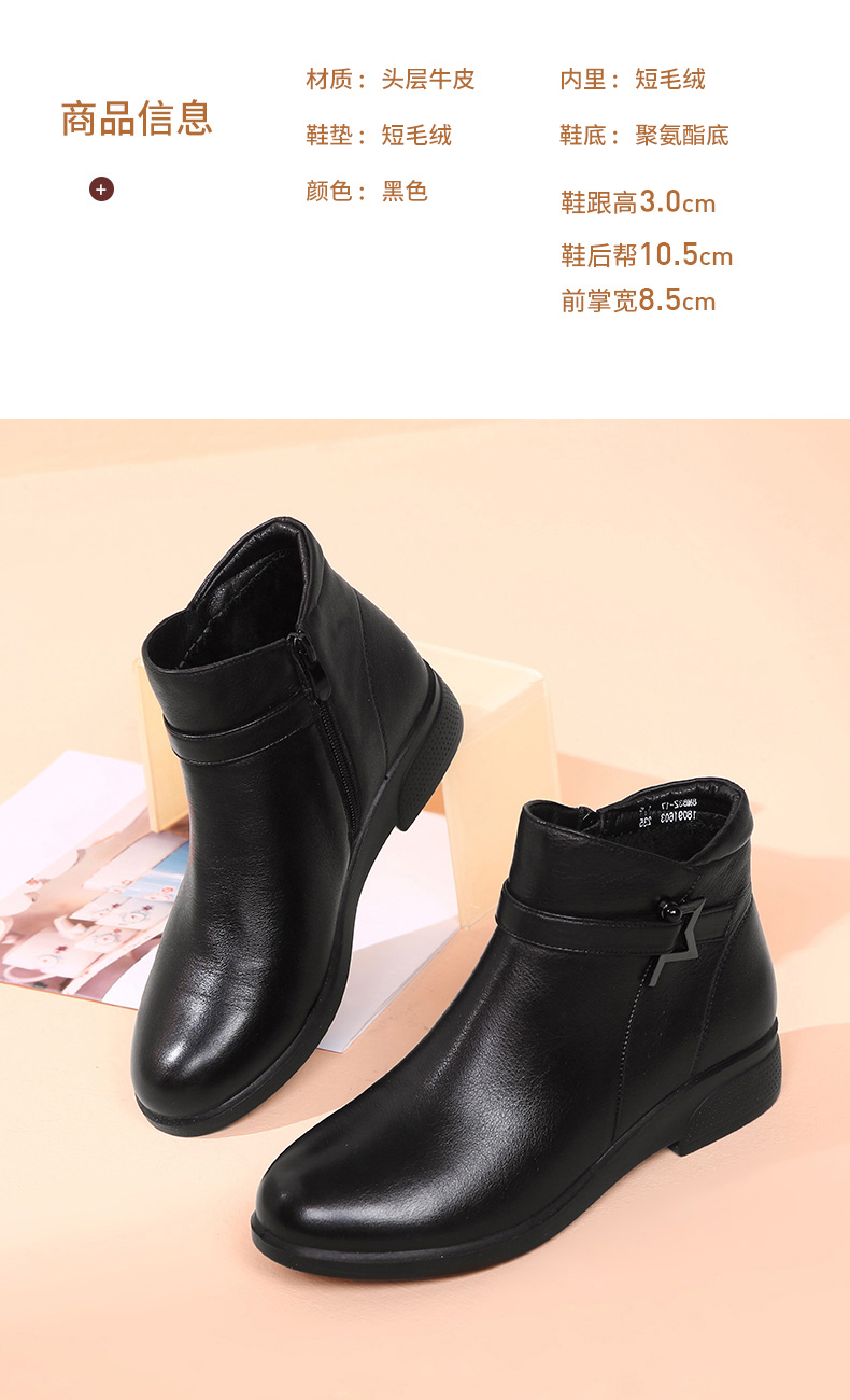 | 靴筒面材质: 头层牛皮 | 靴筒内里材质: 人造短毛绒 |