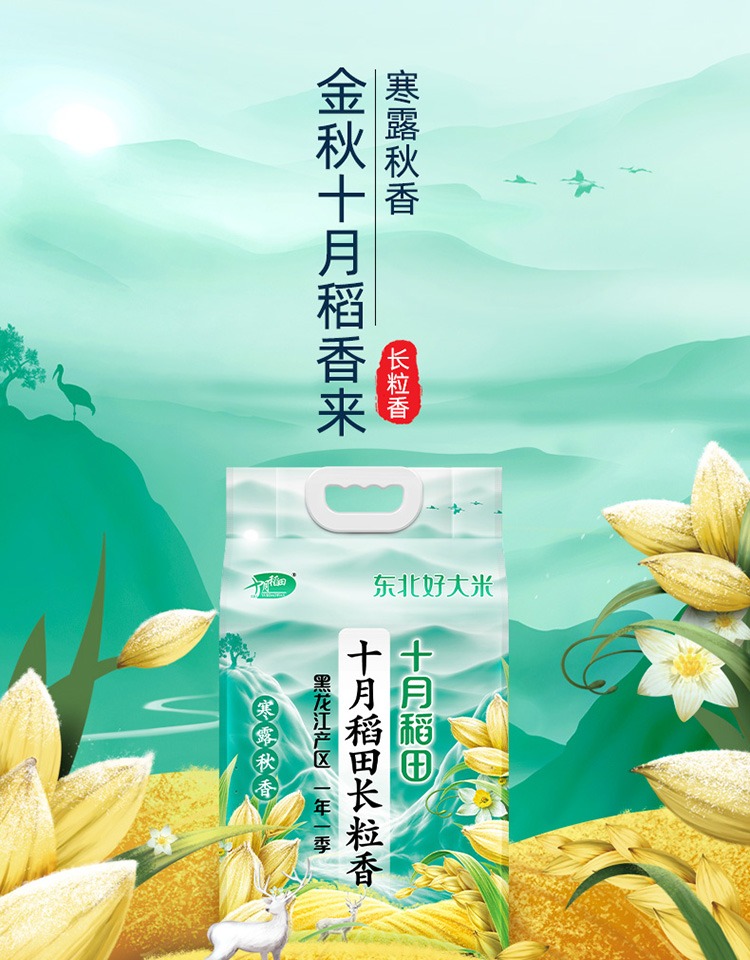 十月稻田寒露秋香长粒香大米